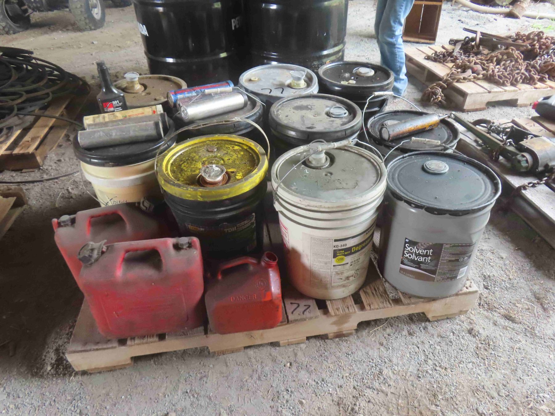 Fluids: Degreaser, Solvent, Hydraulic Oil, Gas Containers.