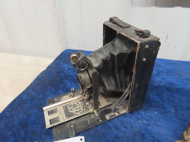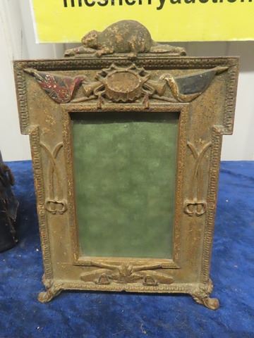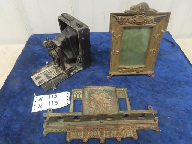 Folding Camera & Cast Victorian Picture Frame 9" x 6" & Cast Pipe Rack w Embossed Chief
