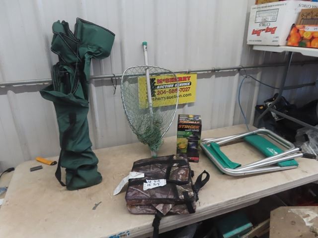 Folding Camping Chairs, Fishing Net, Bag, Zapper, Camo Padded Seat