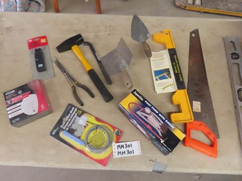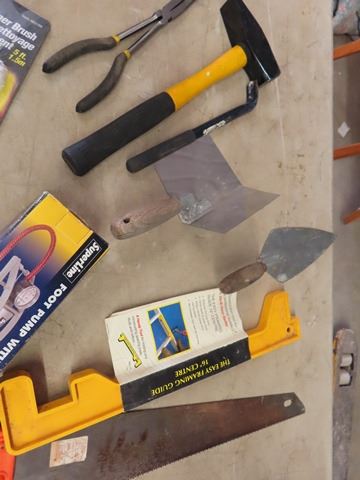 Foot Pump, Drain Cleaner, Smoke Alarm, Volt Meter, Trowels, Hand Saw, plus more