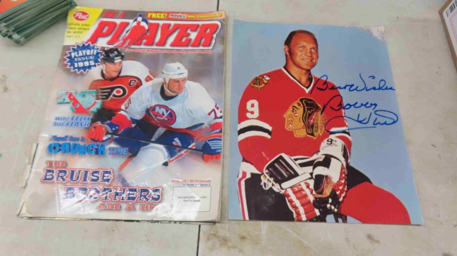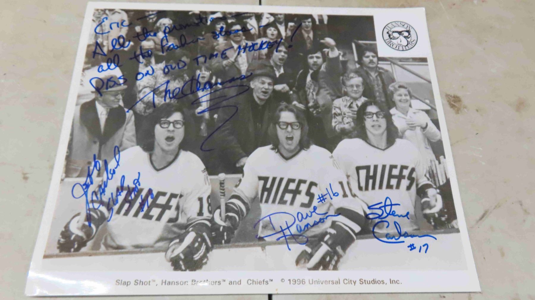 Football Cards, Topps Hockey Stickers + Zoomers, Autographed Picture of Hanson Brothers from Slap Shot