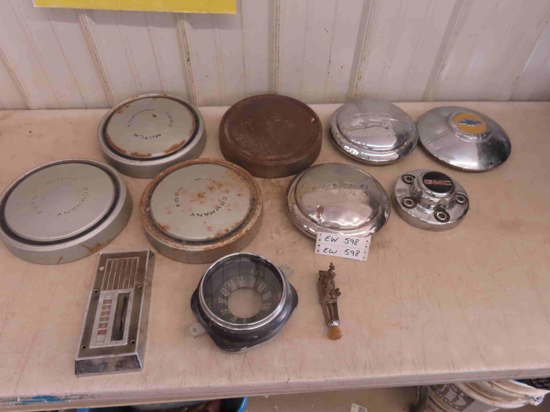 Ford/Chevy Hub Caps, Dash Gauge with Speedometer Temp Battery Oil and Fuel, Console Shift Plate