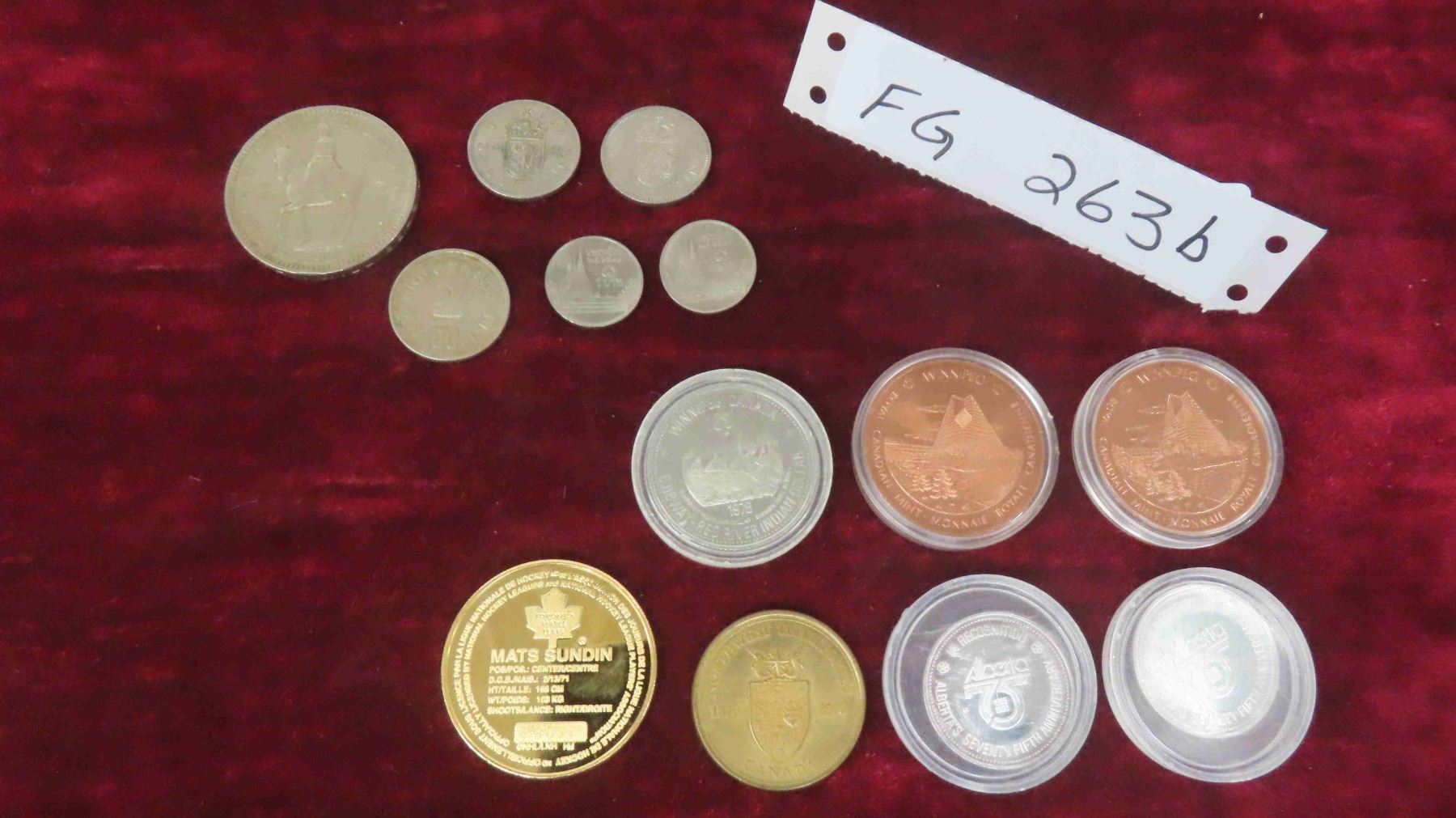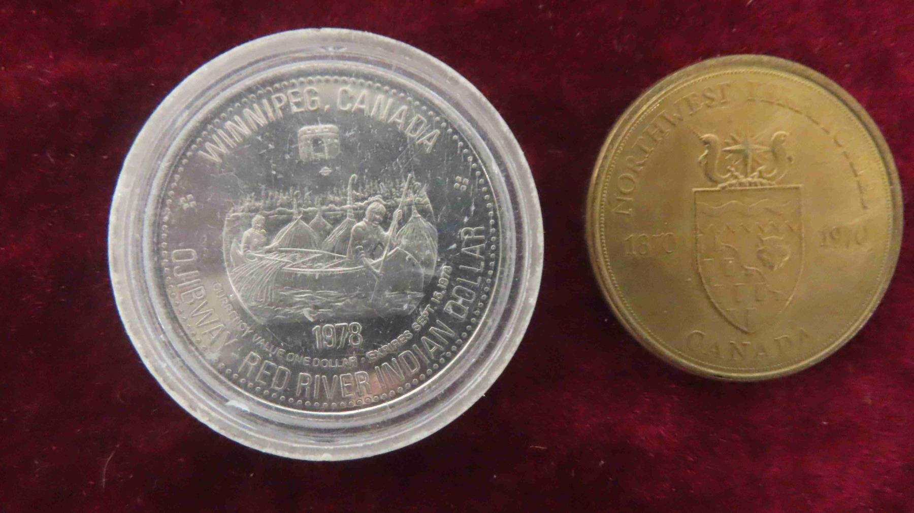 Foreign Currency + Canadian Tokens: Canadian Mint Winnipeg, Alberta 75, Ojibway Red River Indian Dollar, N.W. Territories & More