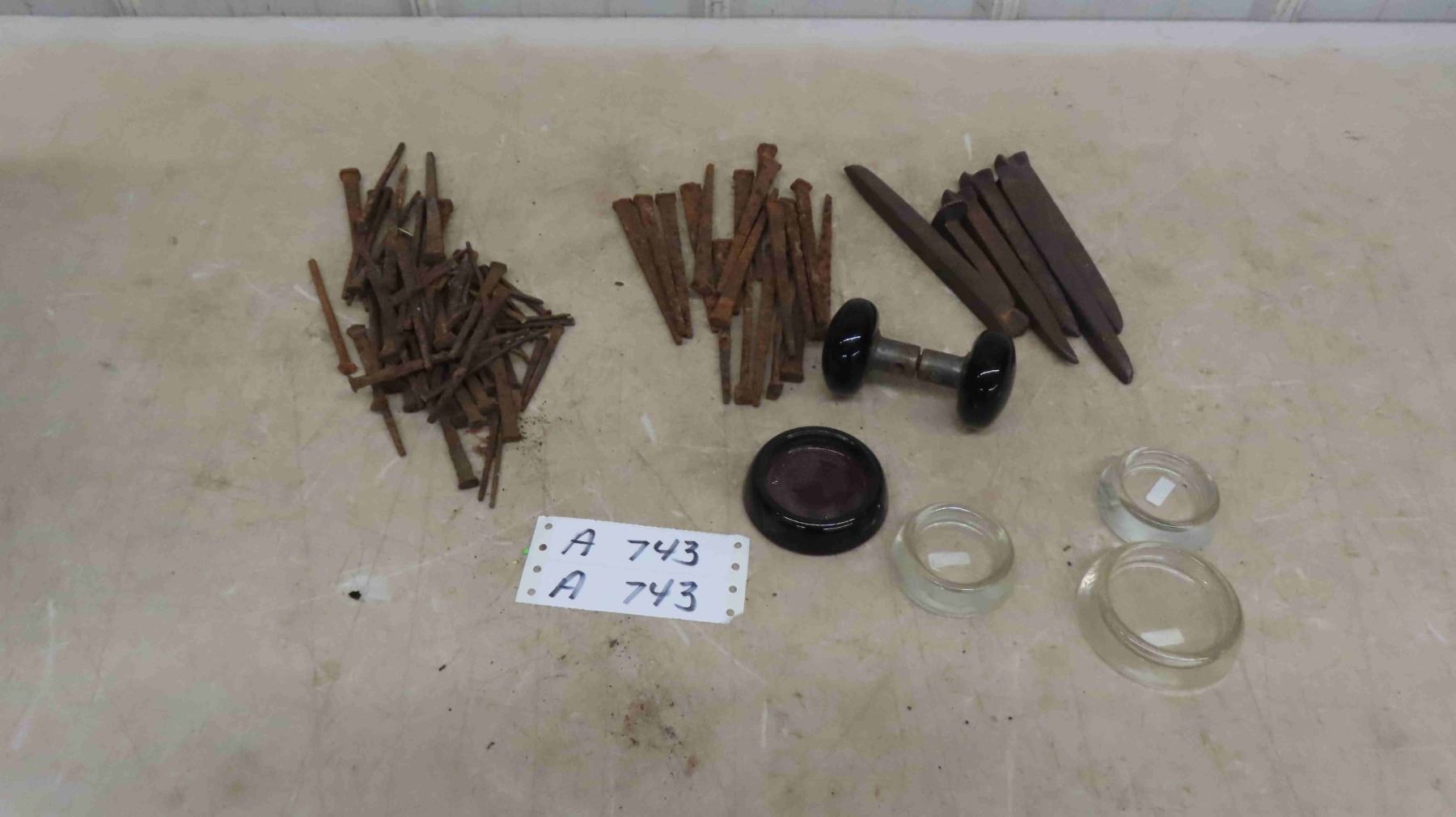 Forged Square Head Nails, Spikes, 4 Glass Floor Protecters, Black Door Knob