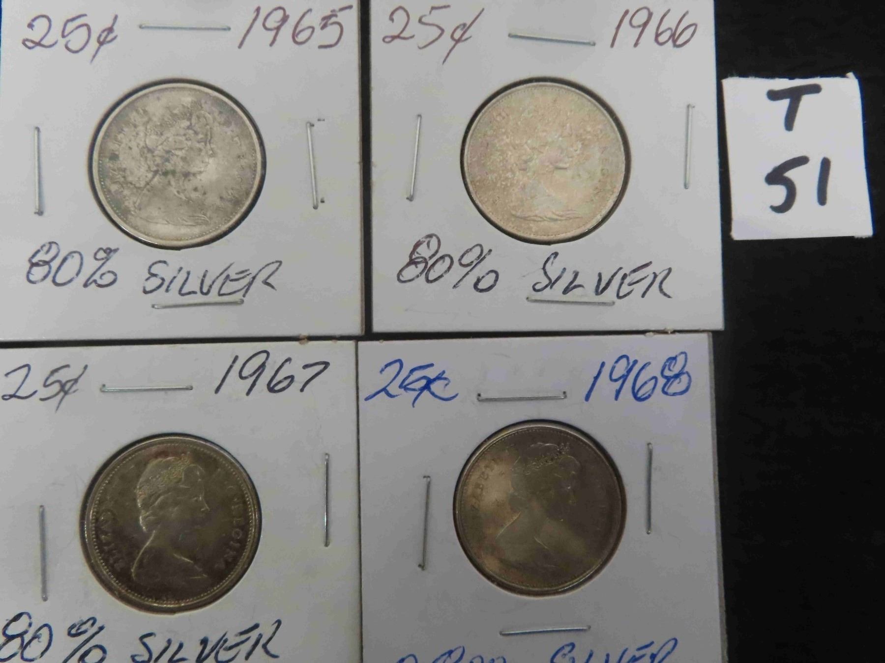 Four; Canadian 80% Silver 25 cent pieces; 1965, 1966, 1967, and 1968; ALL 4 coins are
