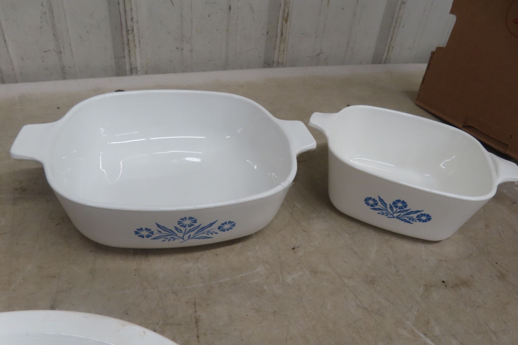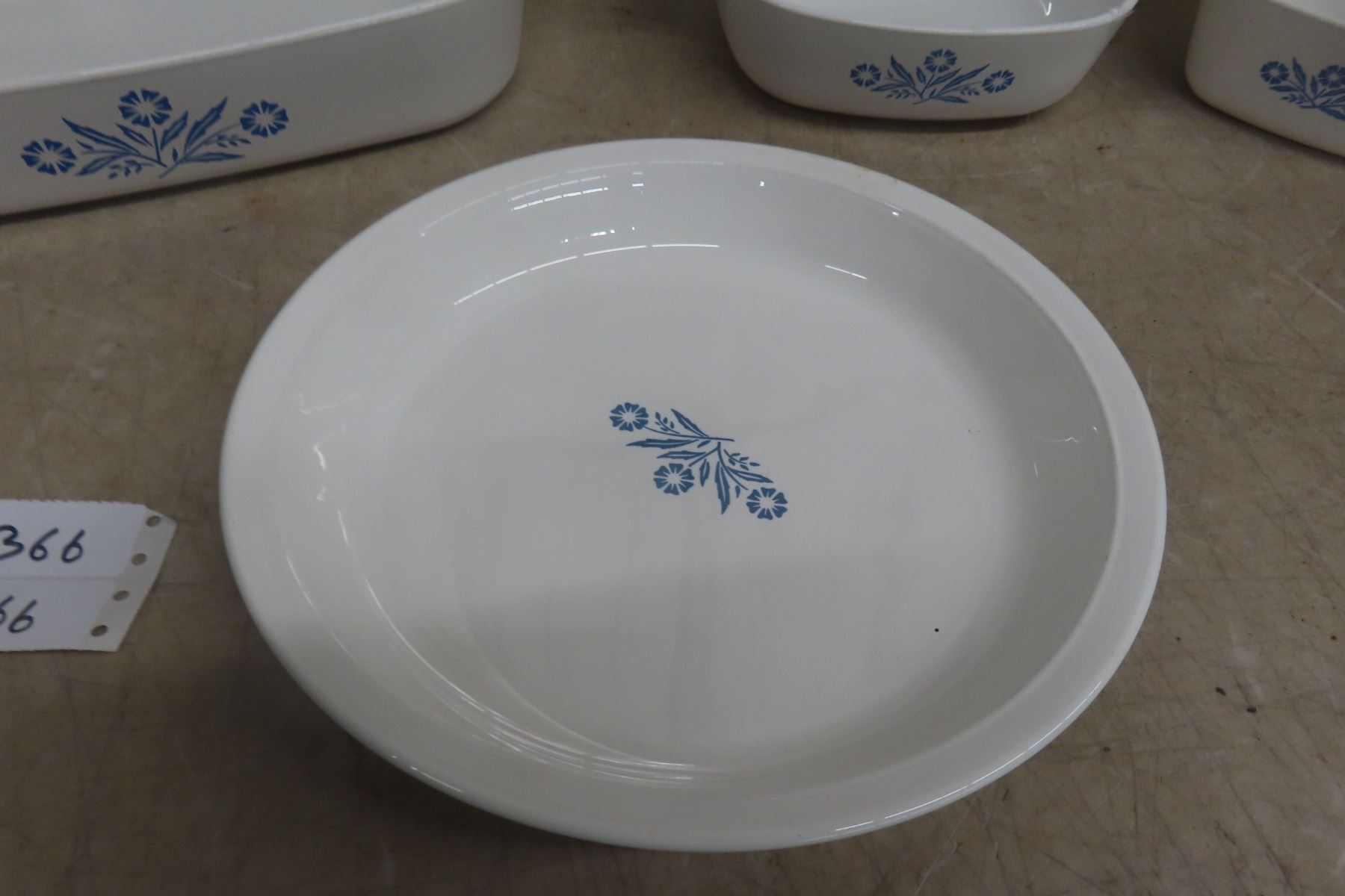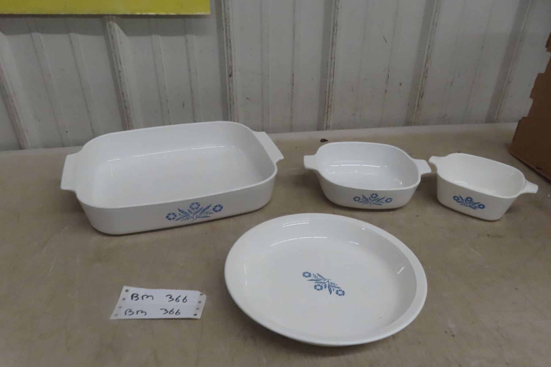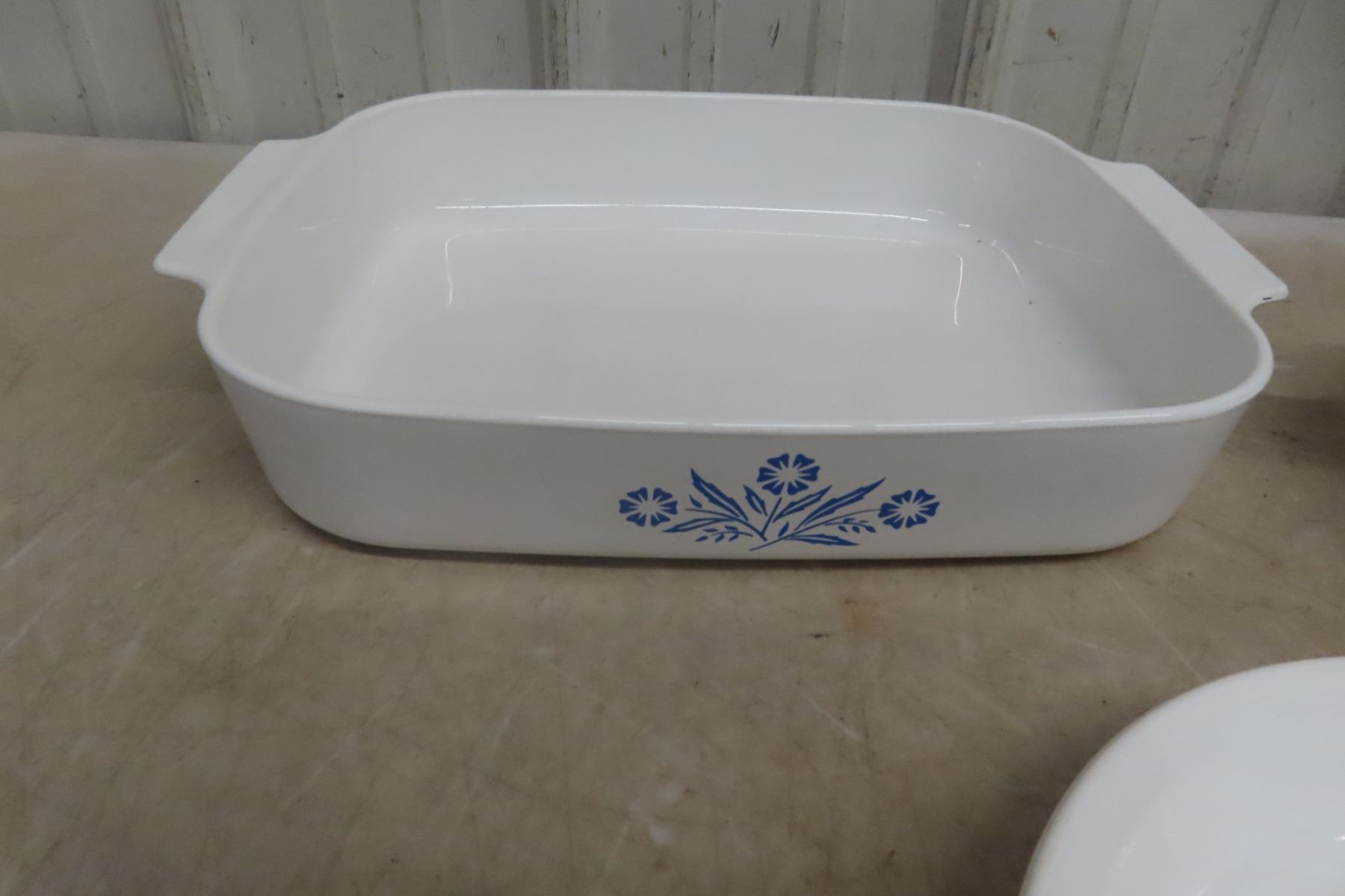 Four Piece Vintage Blue Cornflower Corningware: Large Baking Pan, Pie Plate, and Two Casseroles
