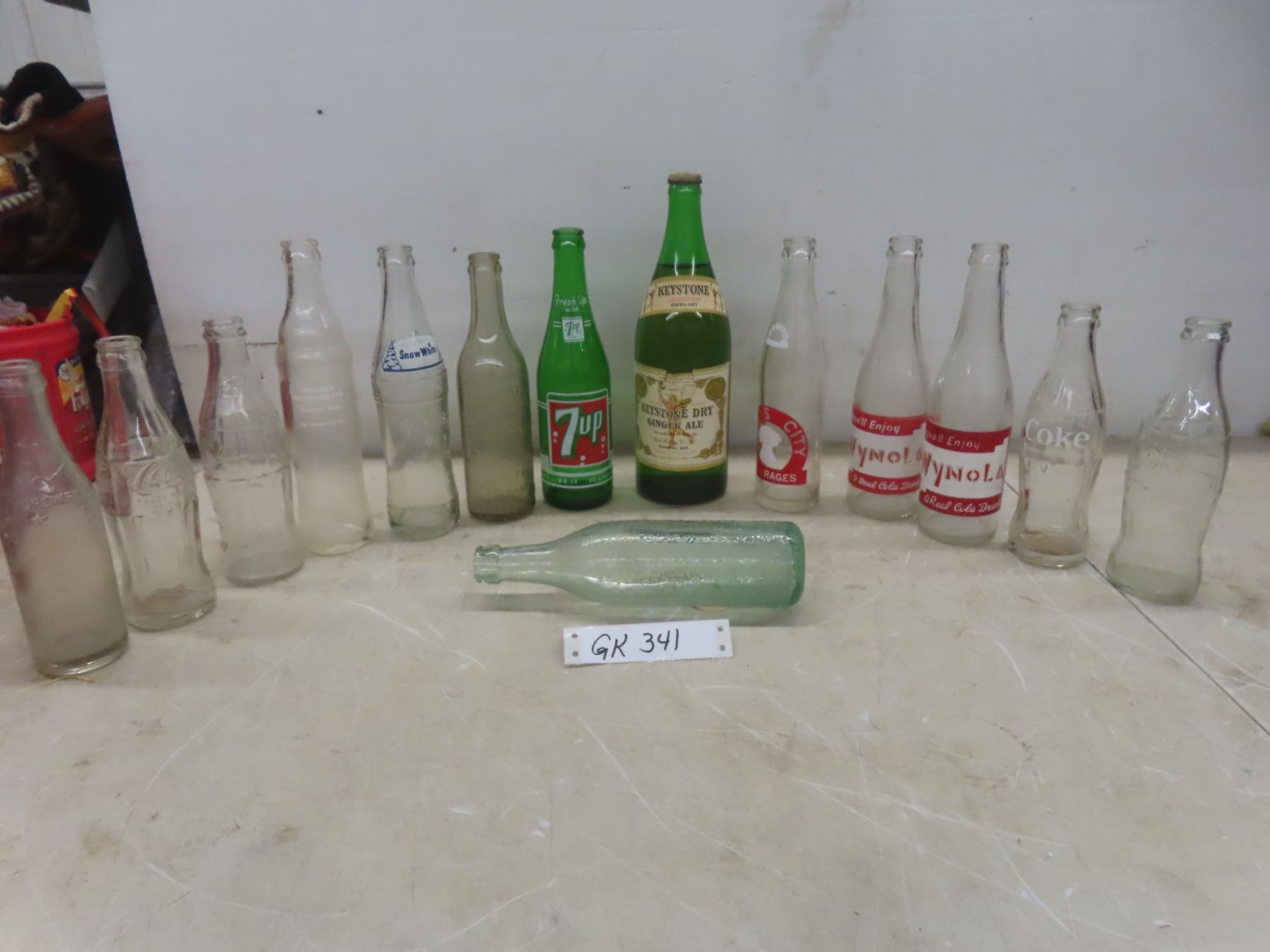 Fourteen Vintage Bottles (7-Up, Coke, Plains City, Wynol, Snow White, Keystone Ginger Ale) with Pro