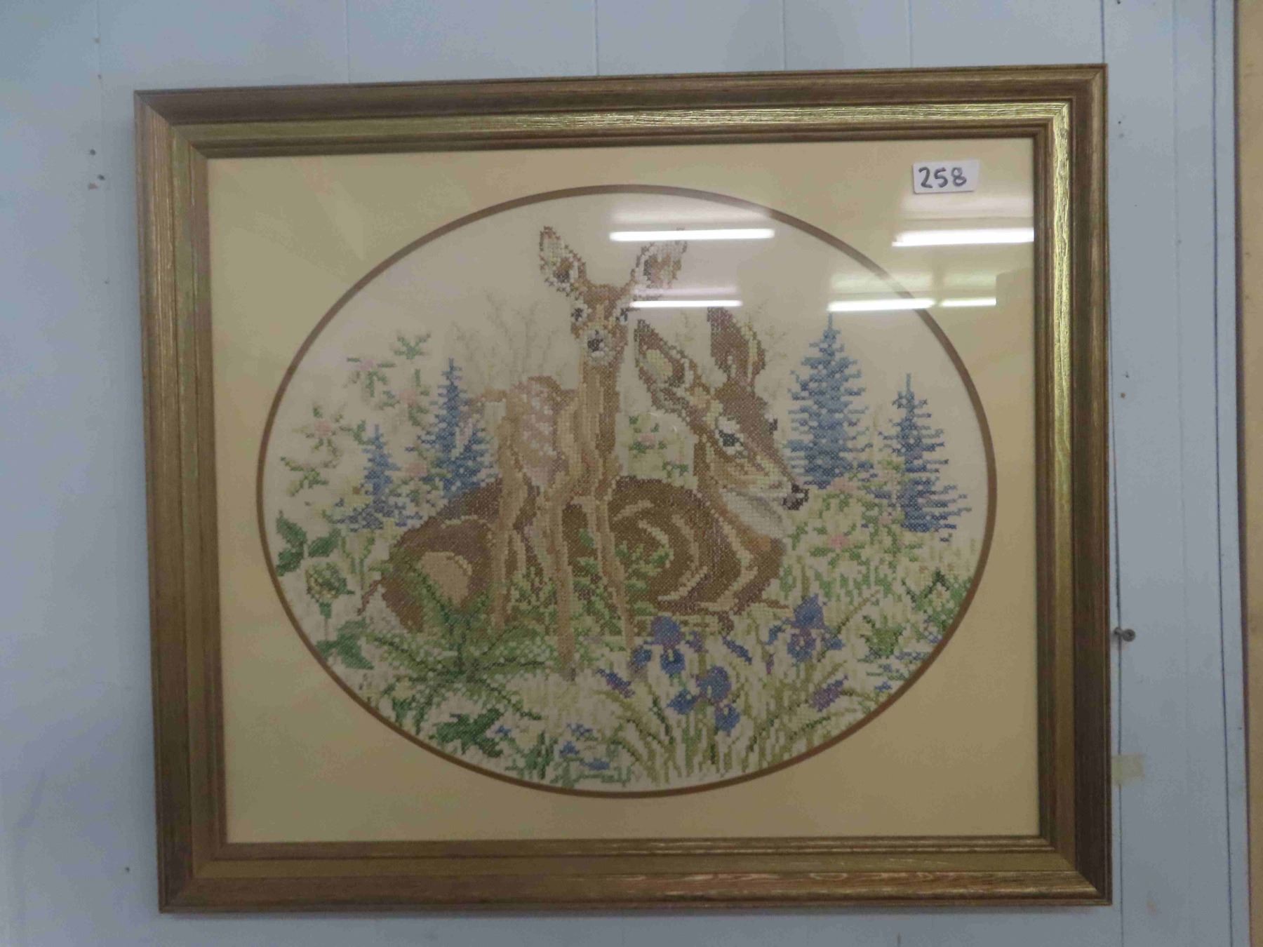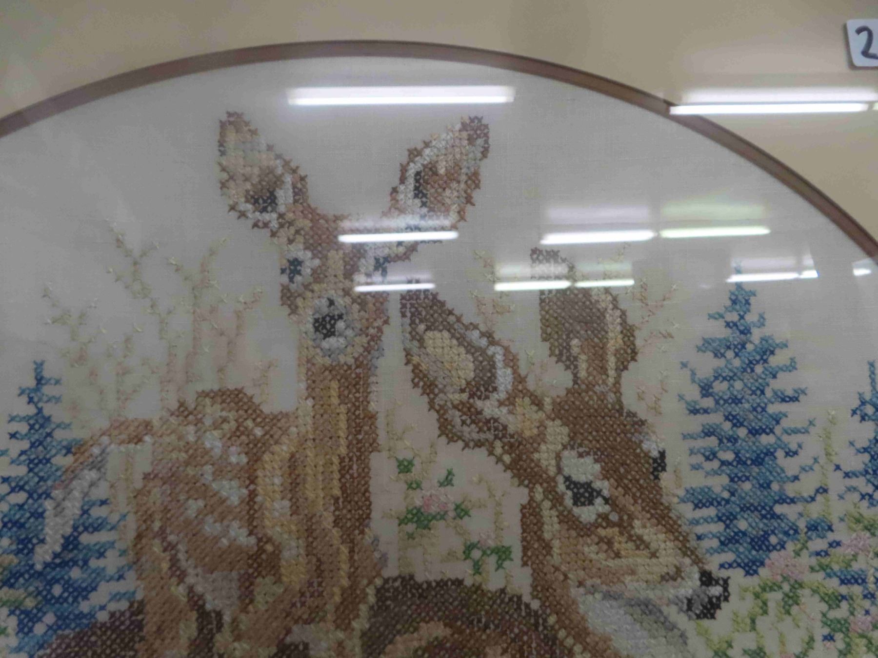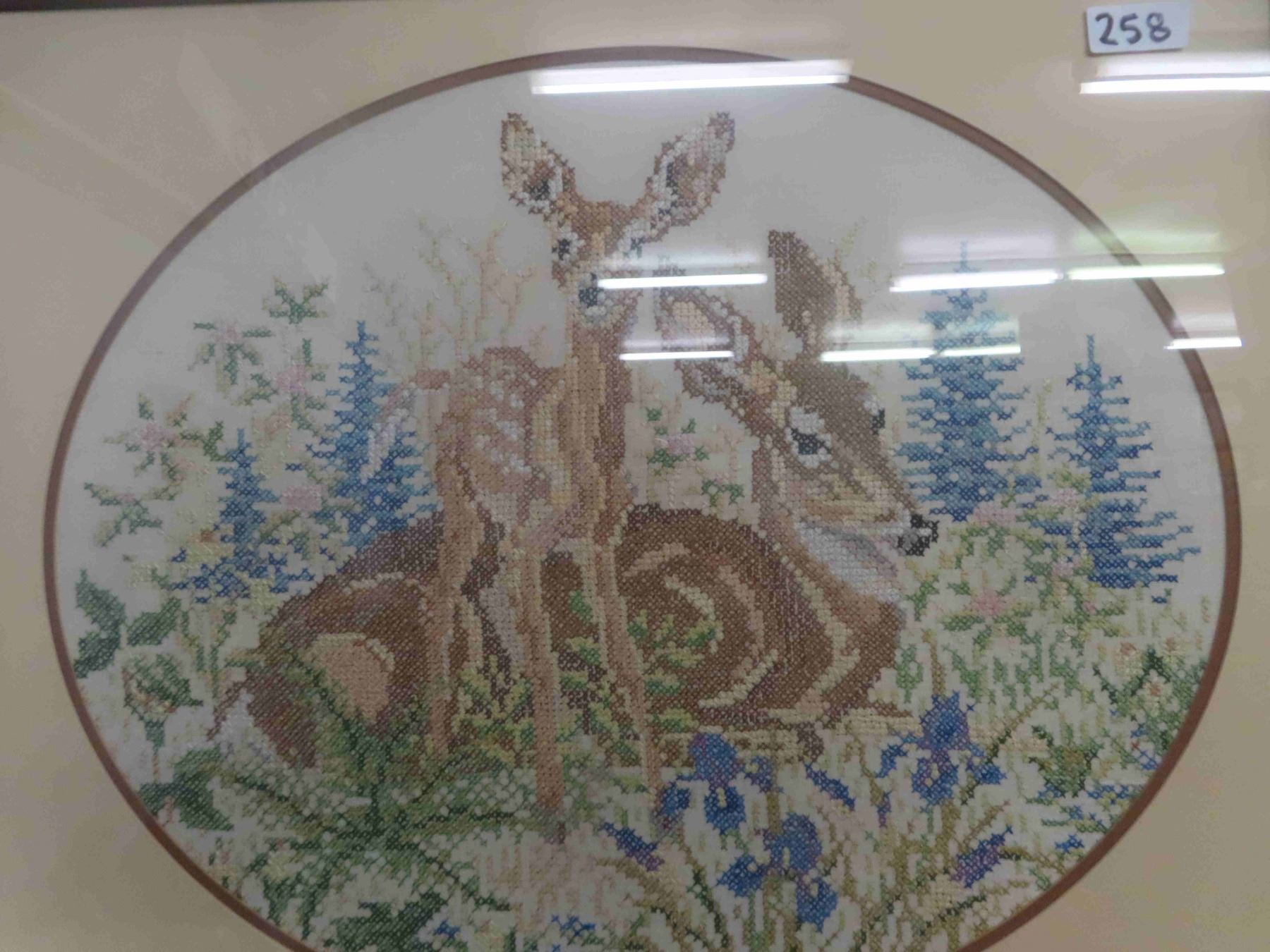 Framed Cross Stitch of Deer in Forest 25 1/2'' x 29 1/2''