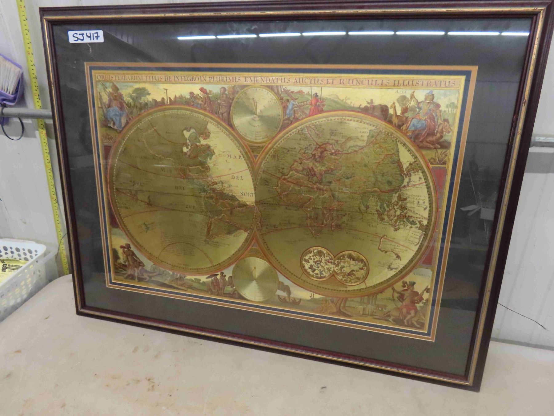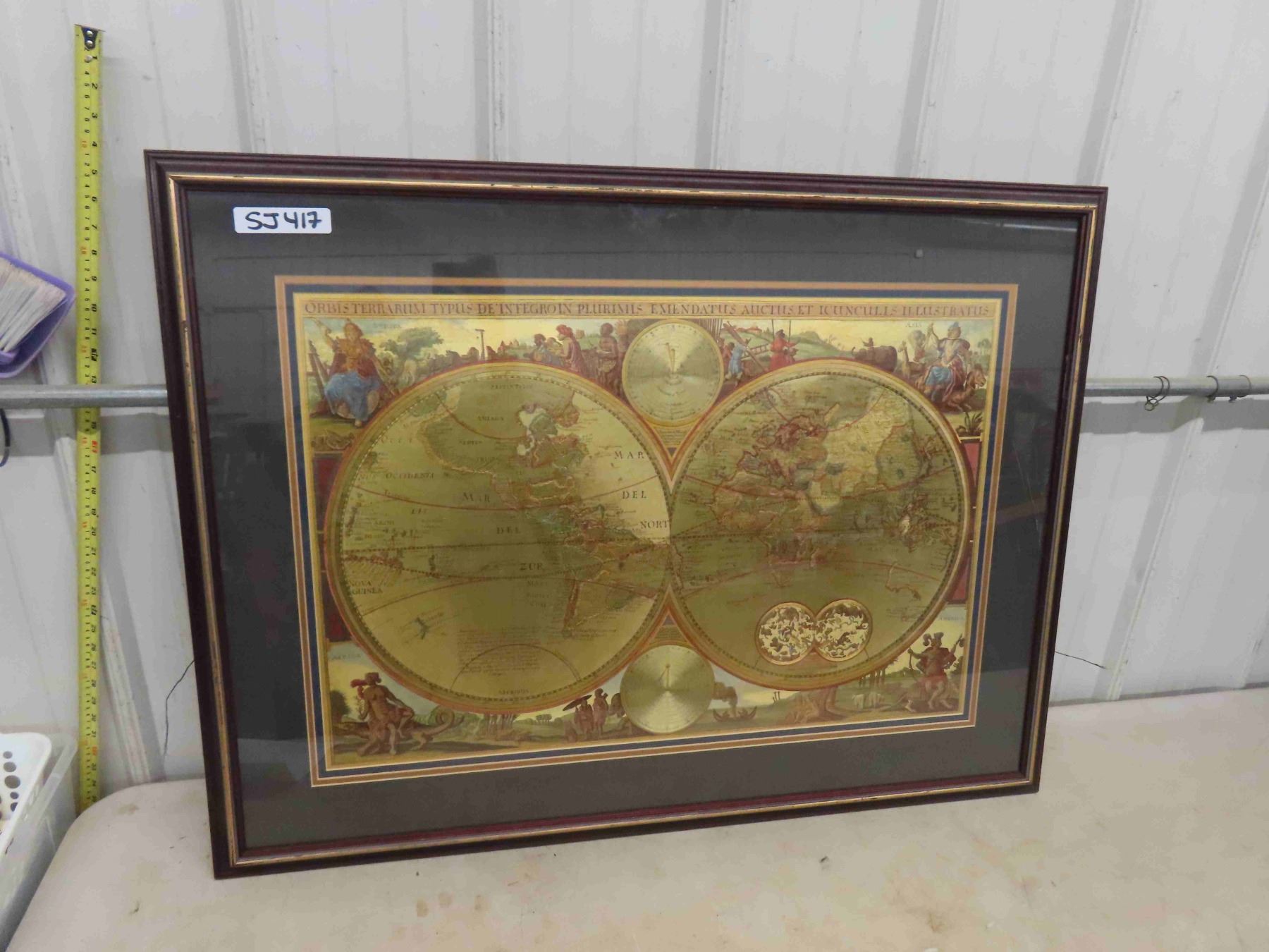 Framed Map 30" x 40" - Double Hemisphere