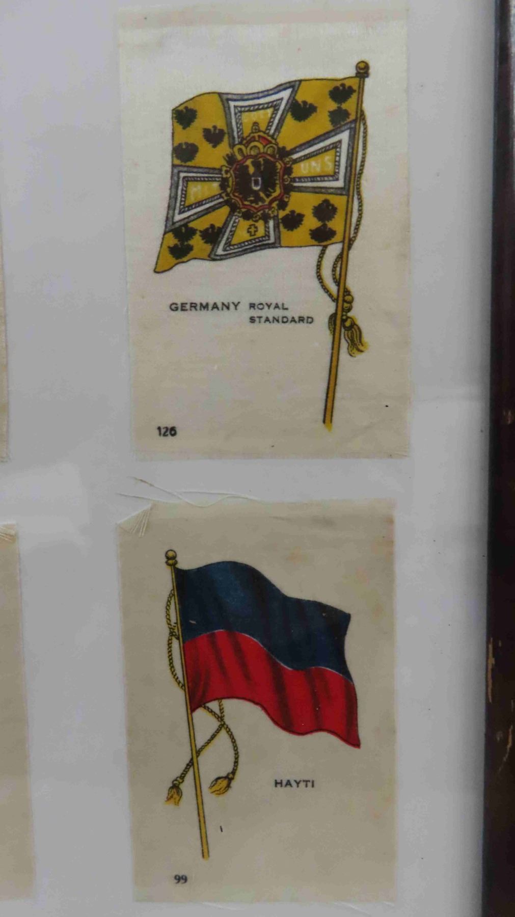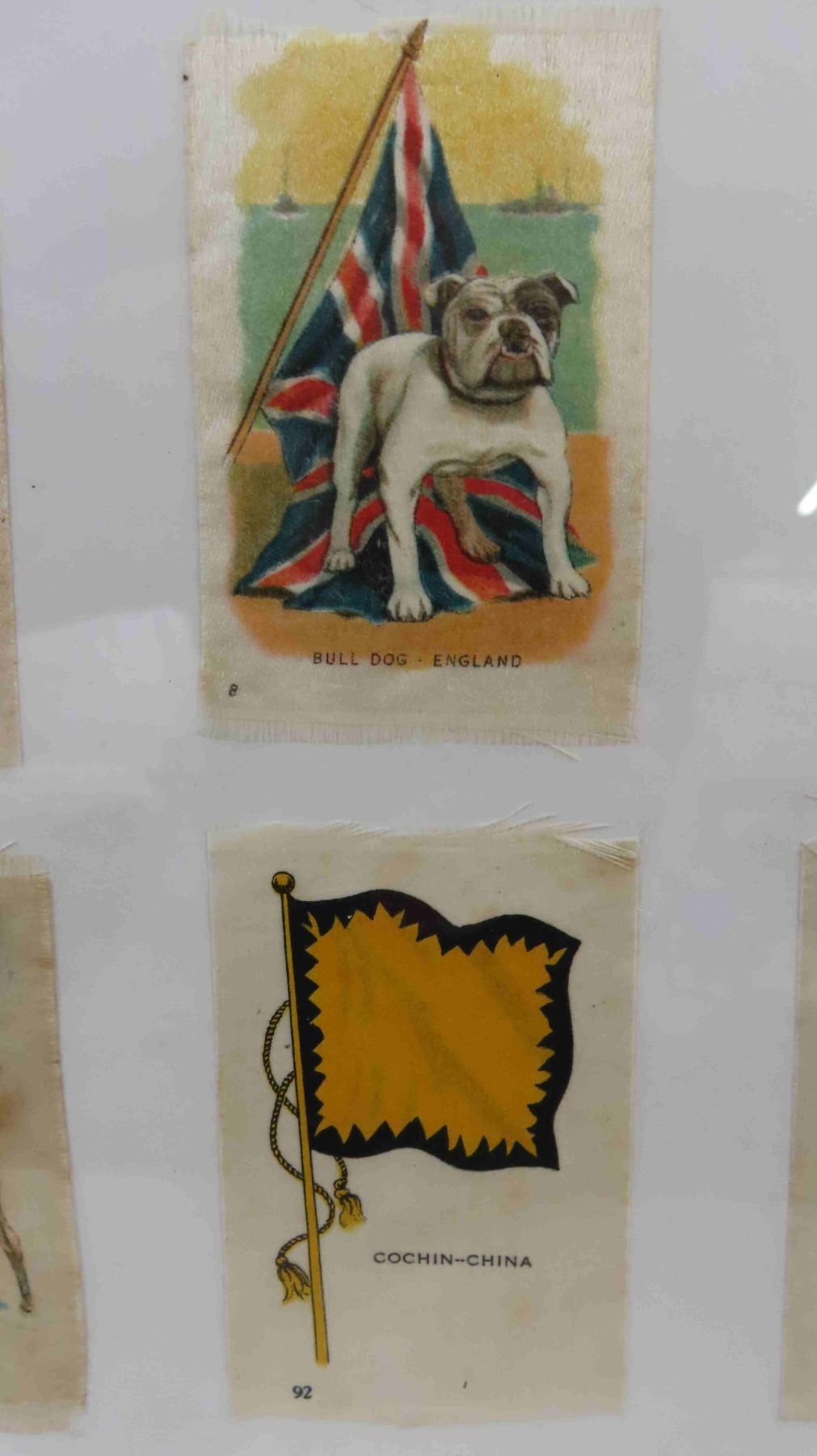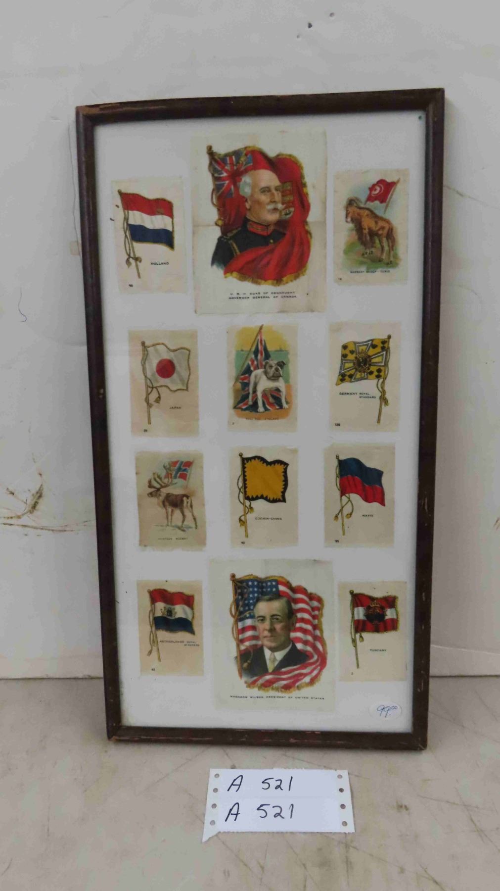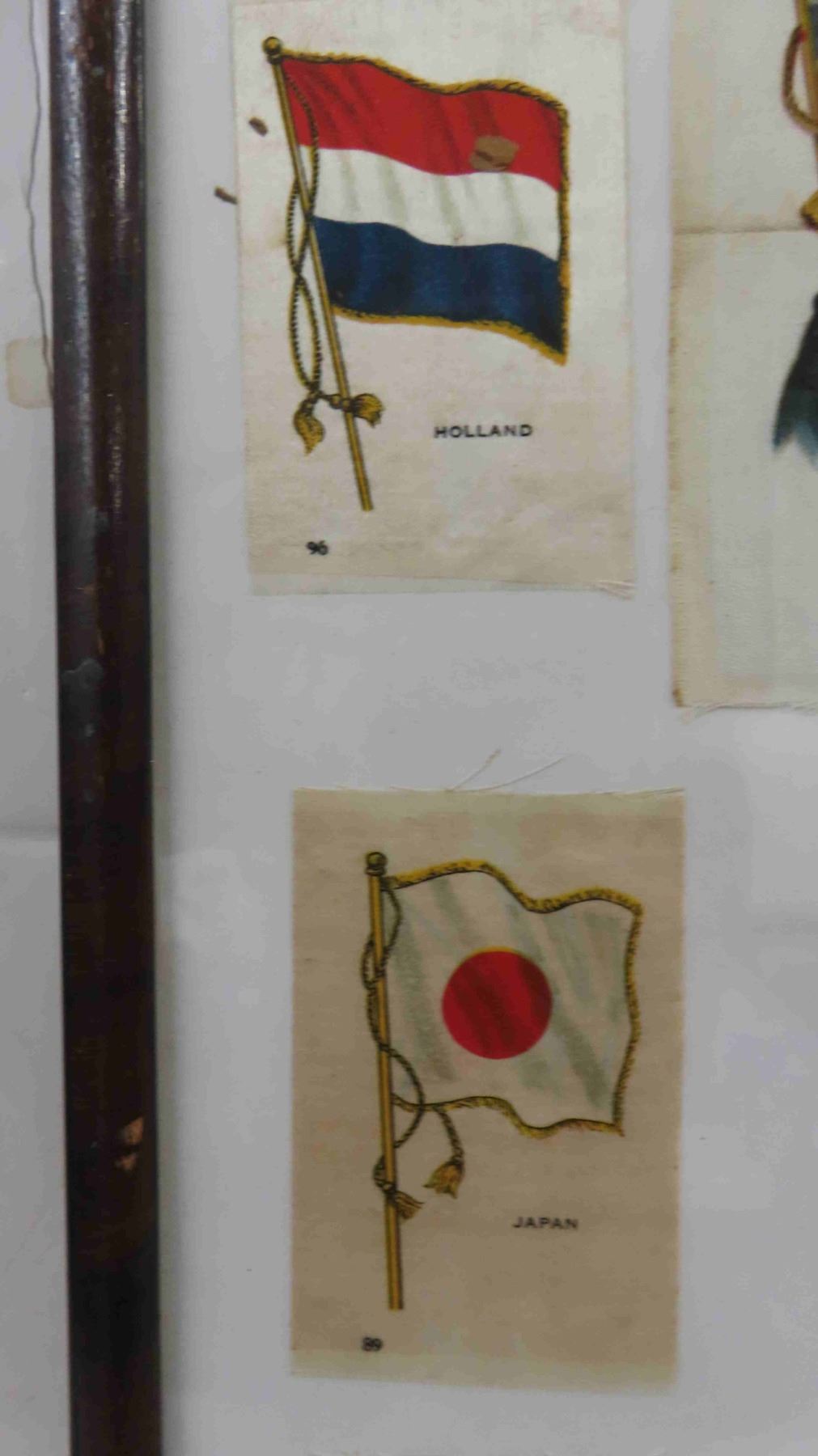 Framed Picture with Vintage Cloth Advertisements from England, Japan, Holland,