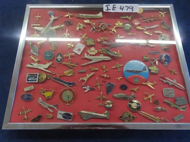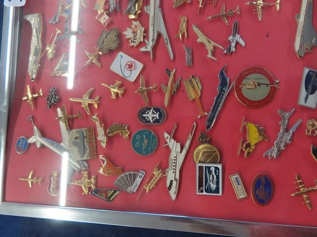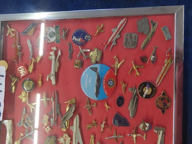 Framed Pin Collection ; Air Plane Related, Various Companies + Events - 12" x 14"