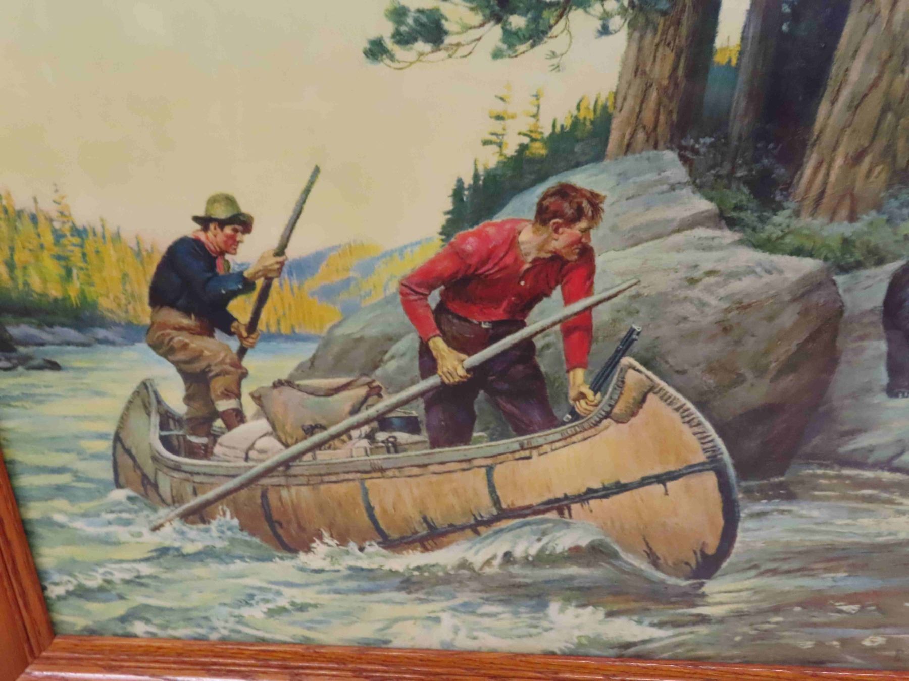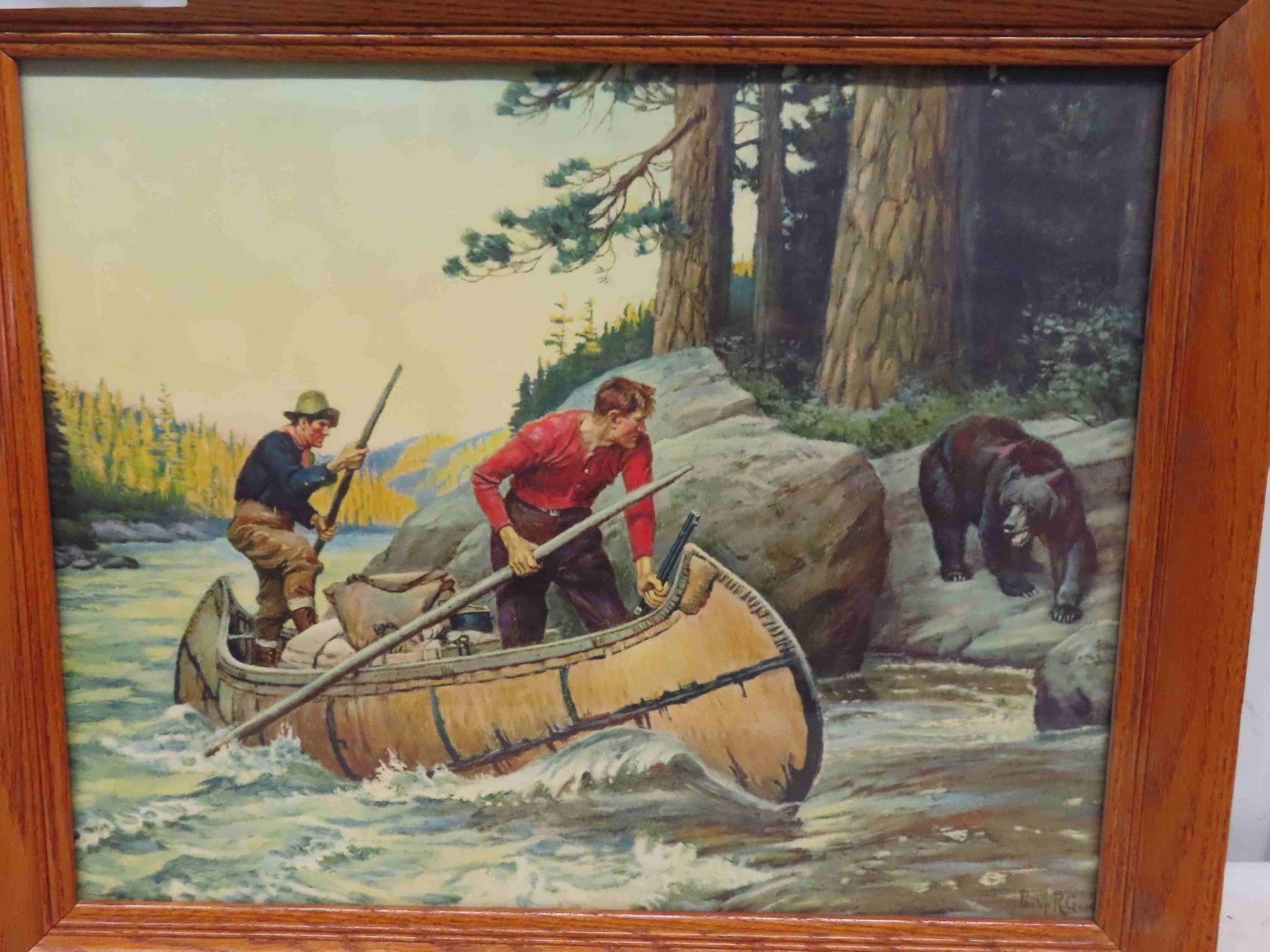 Framed Print 2 Guys in Canoe Hunting a Bear - Signed 19" x 23"
