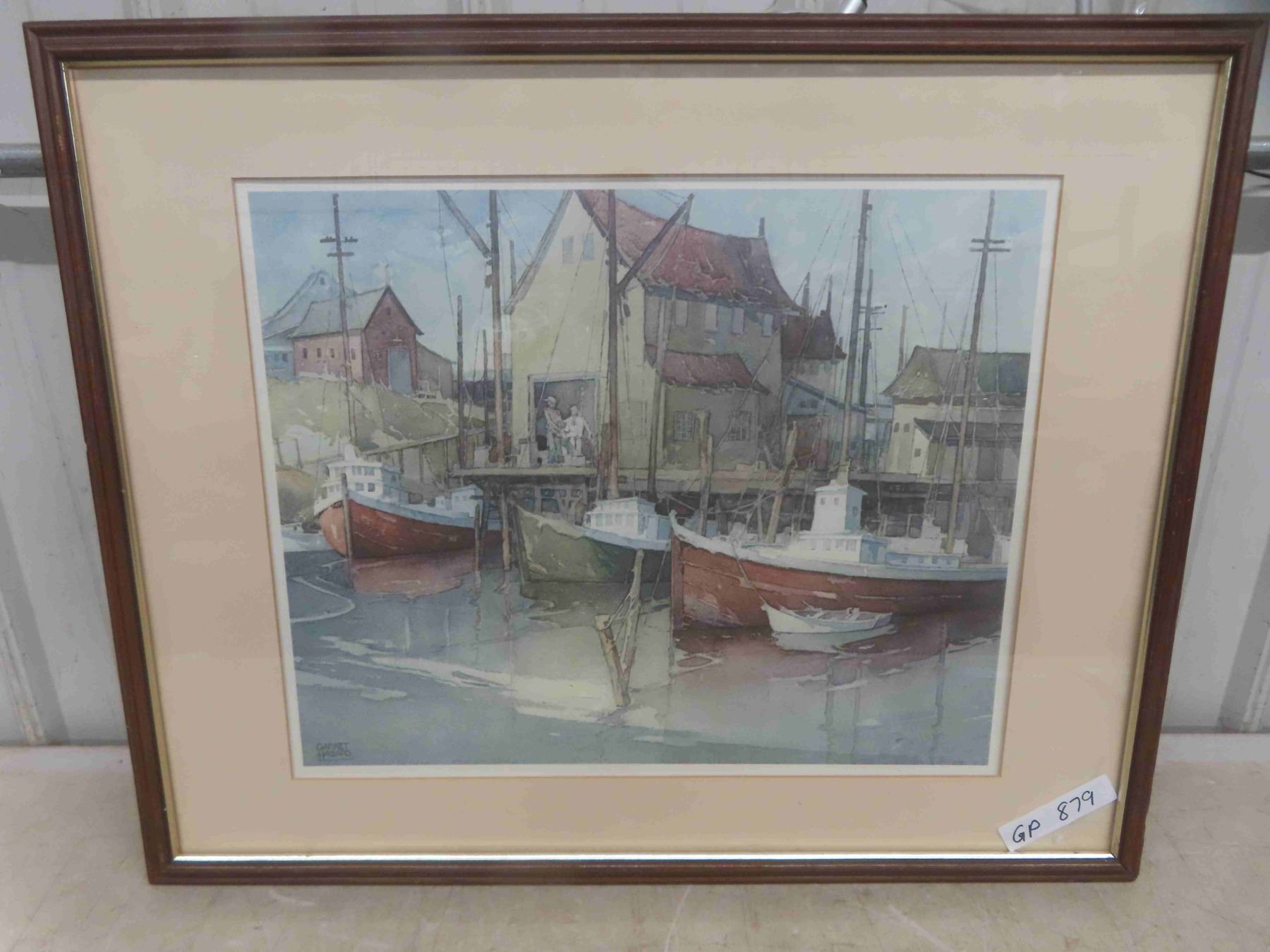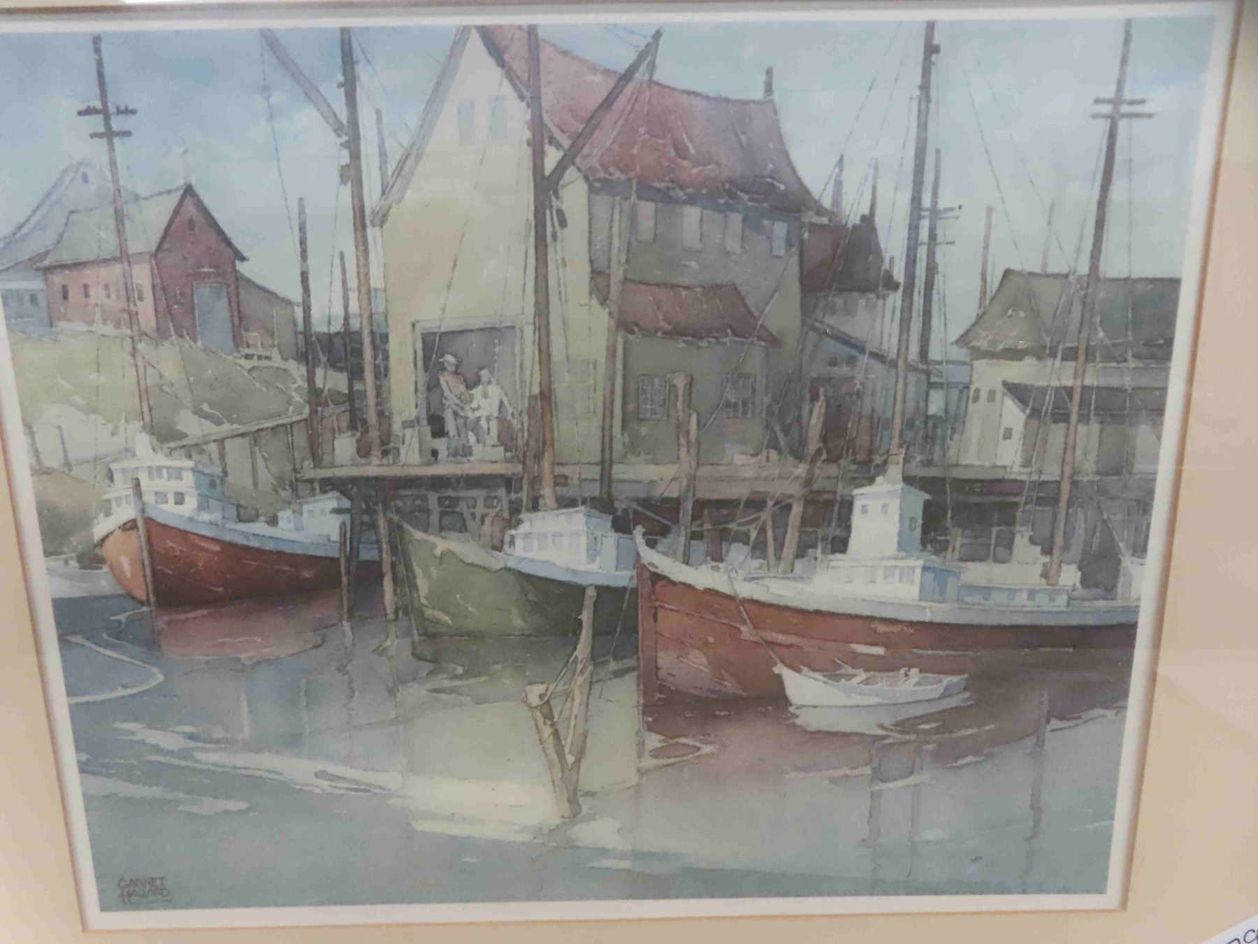 Framed and Signed Print by Garnet Hazard 'Boats in Harbour' Canadian Artist 29 3/4'' x 24''