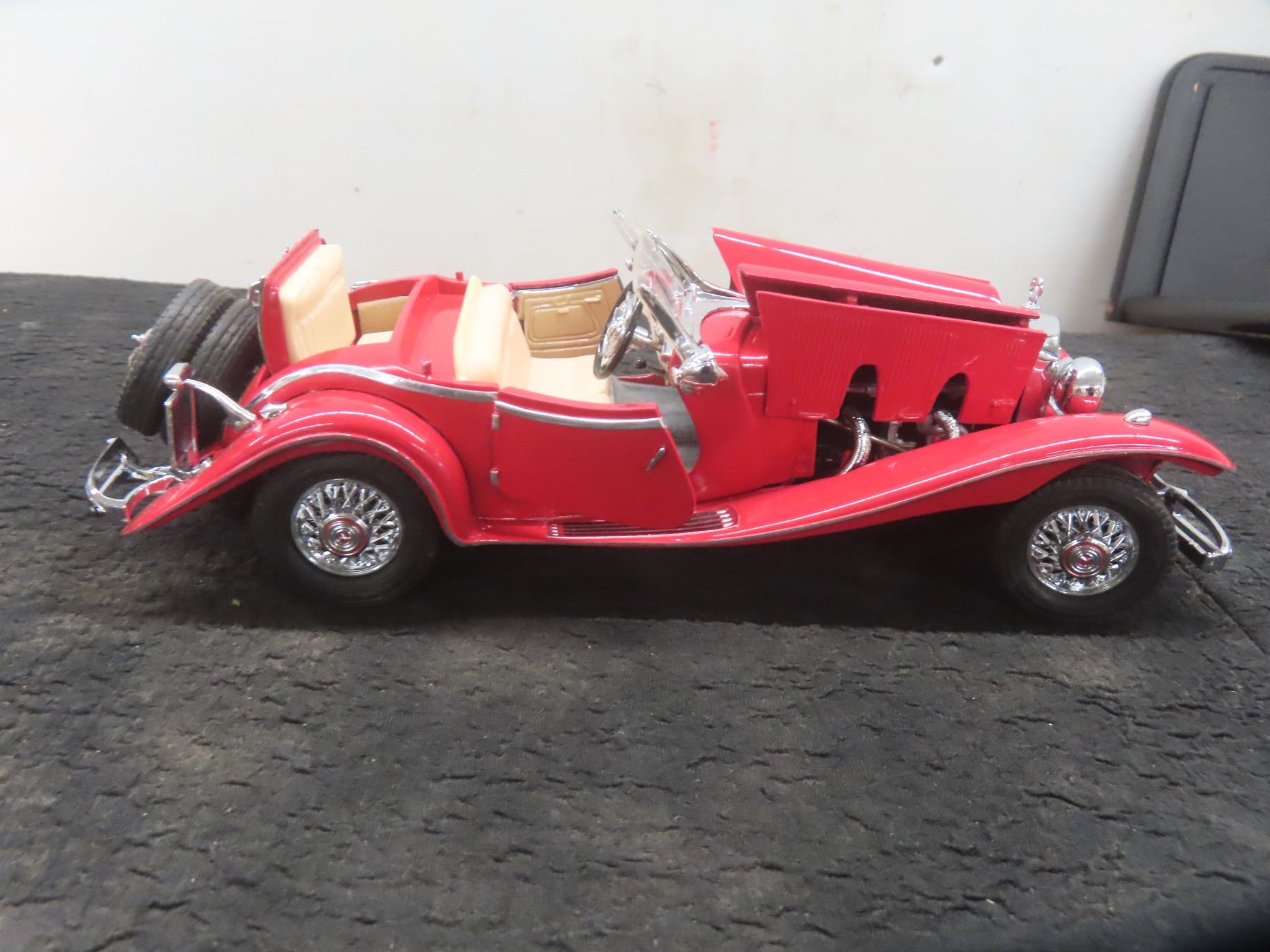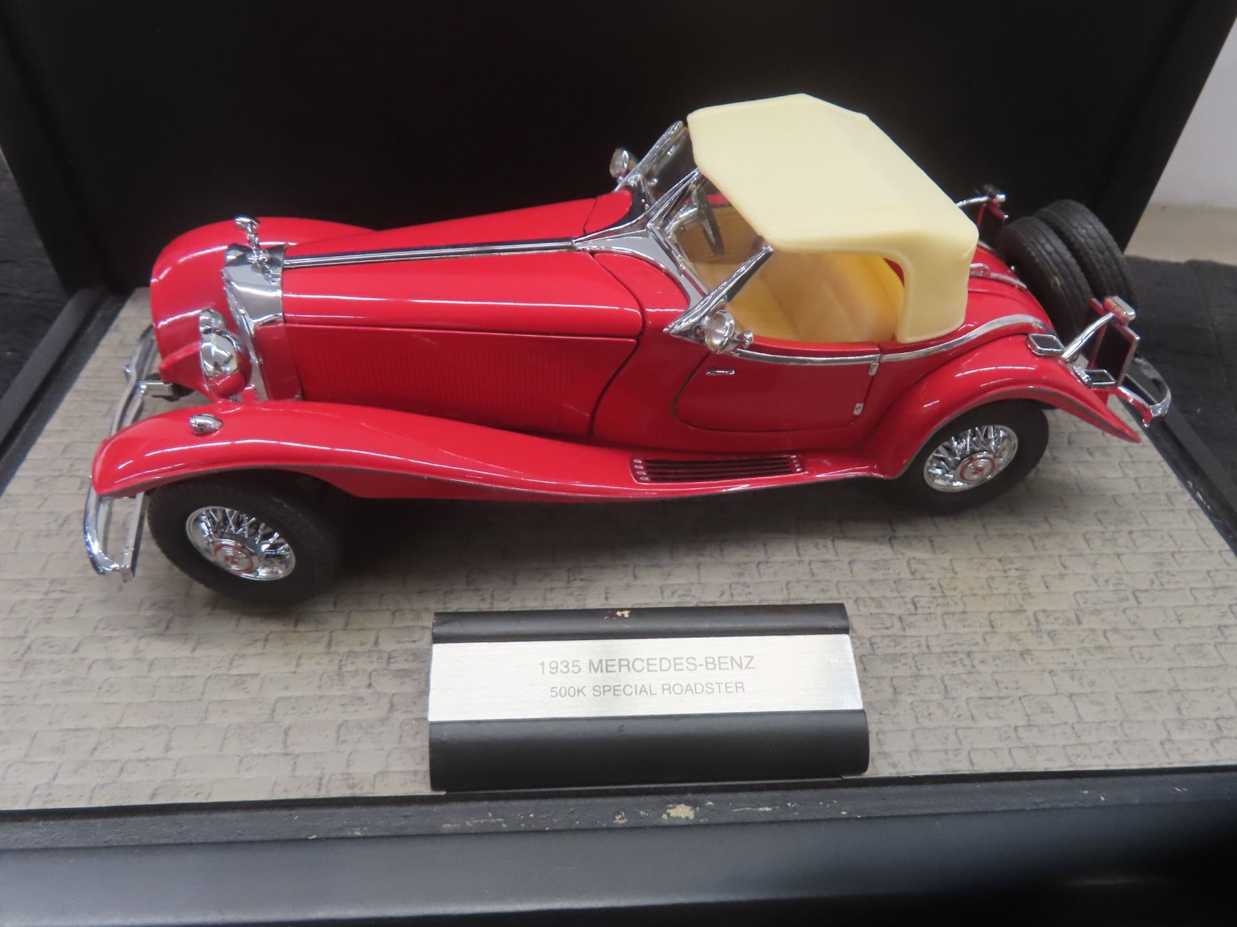 Franklin Mint 1/24 Scale Mercedes Benz 500k Special Roadster Red with Wood and Plastic Showcase & Changeable Parts
