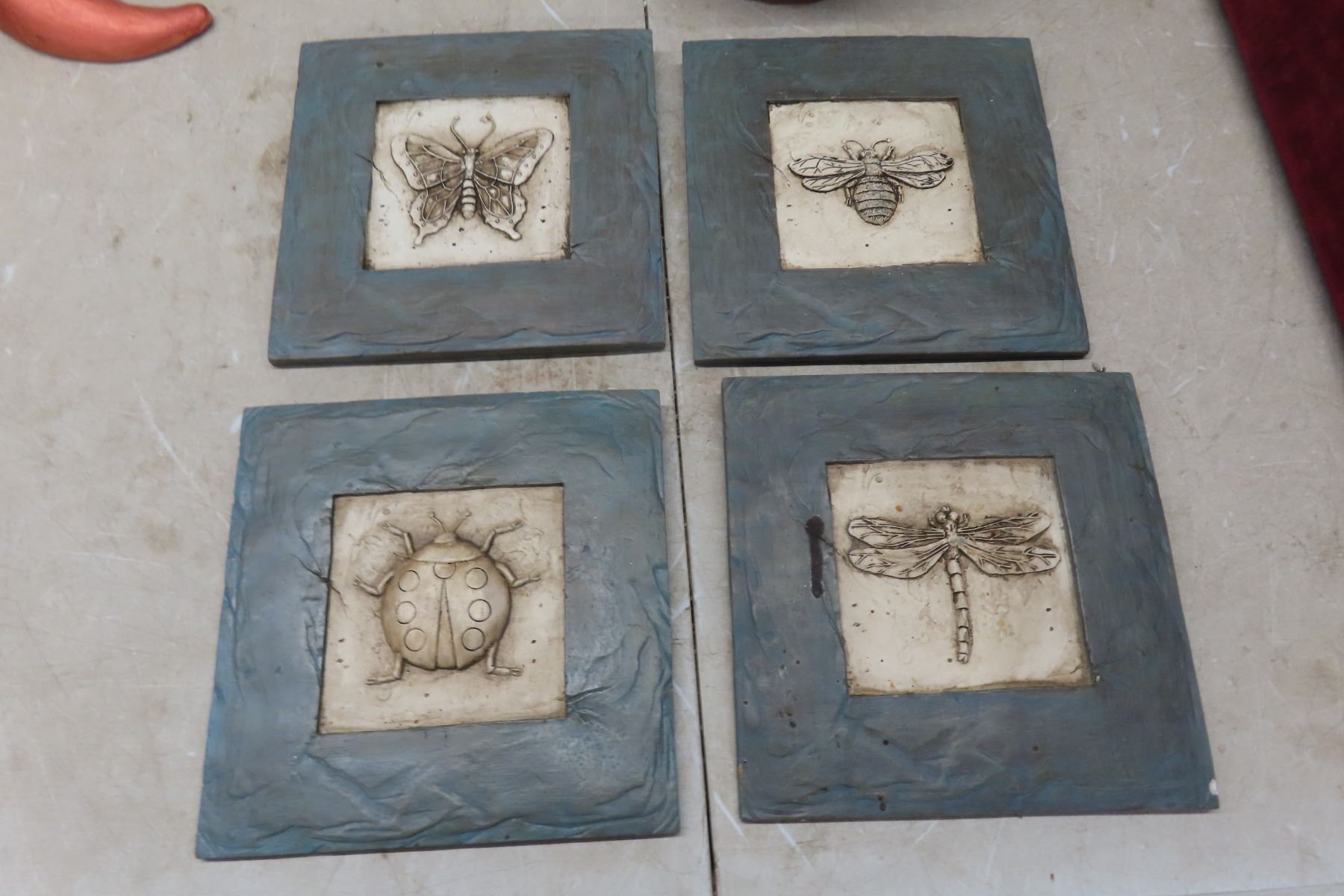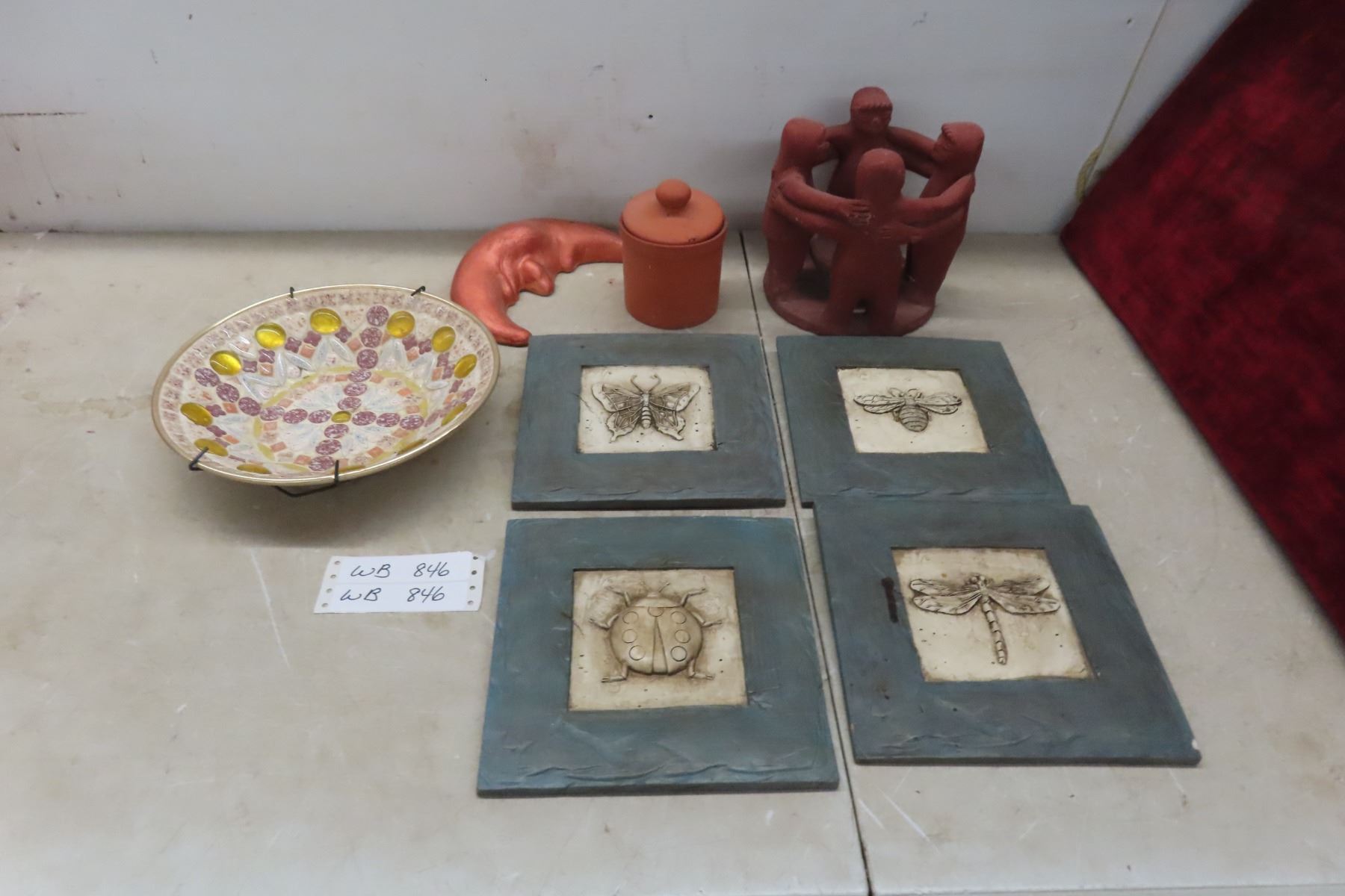 Friendship Circle Terra Cotta Sugar Bowl, Decorative Plate 4 Bug Pictures 8x8''