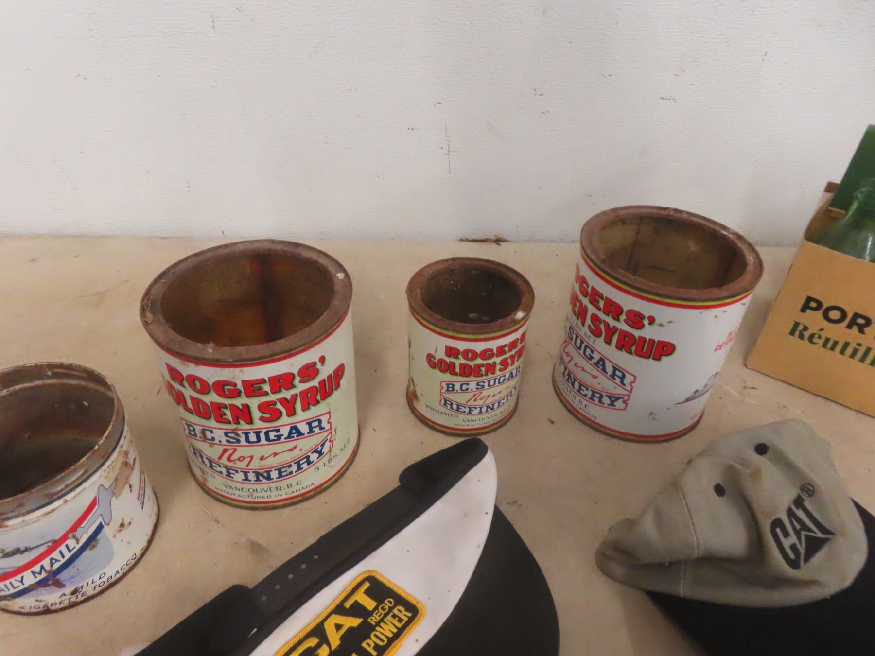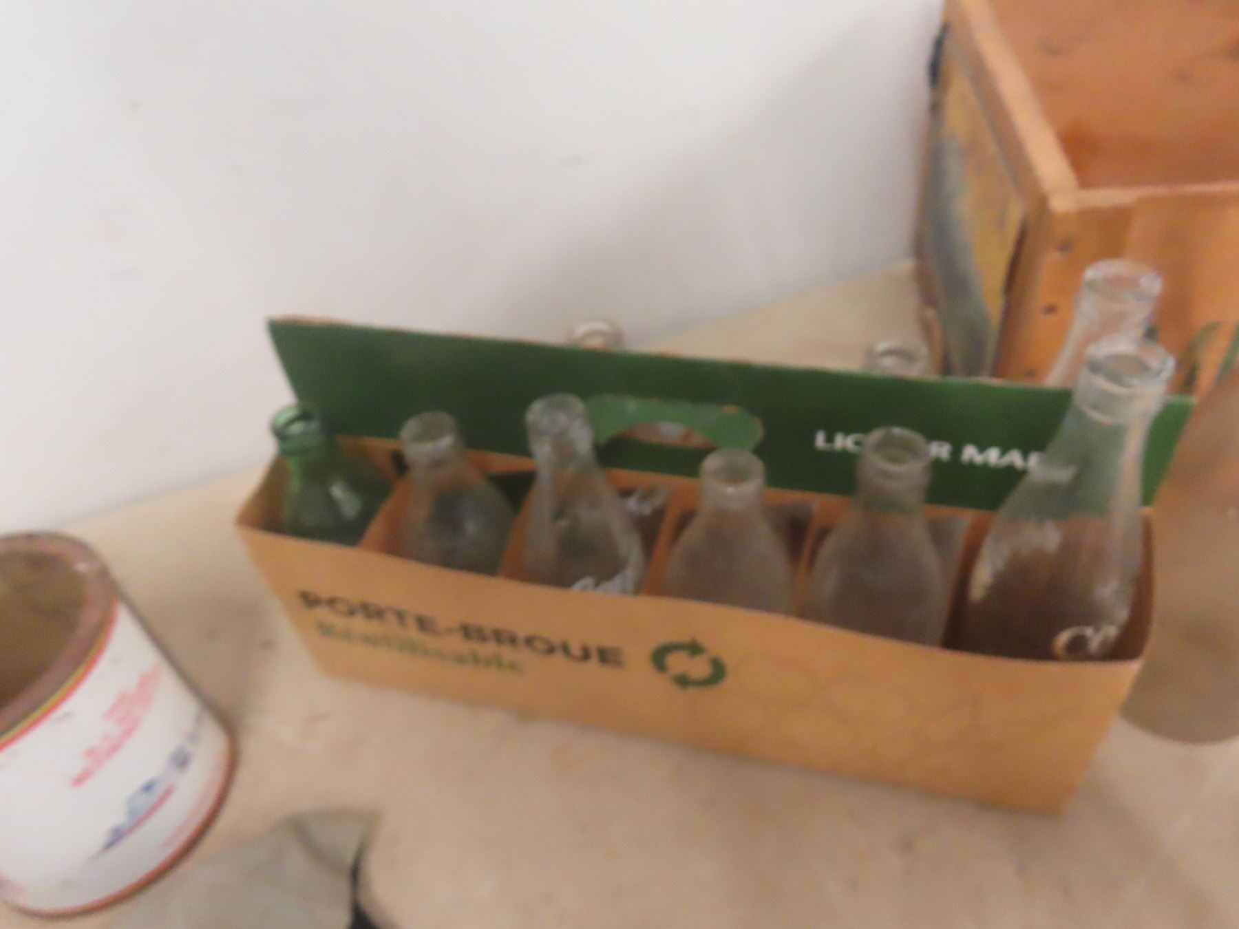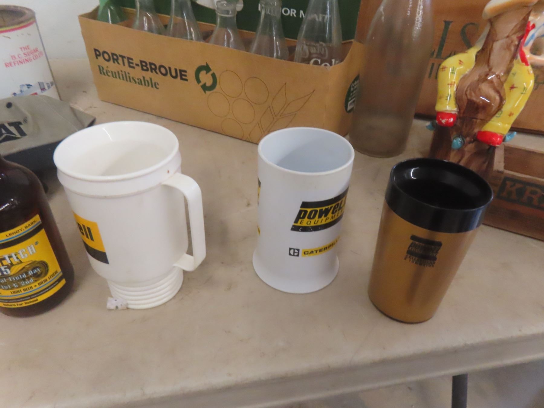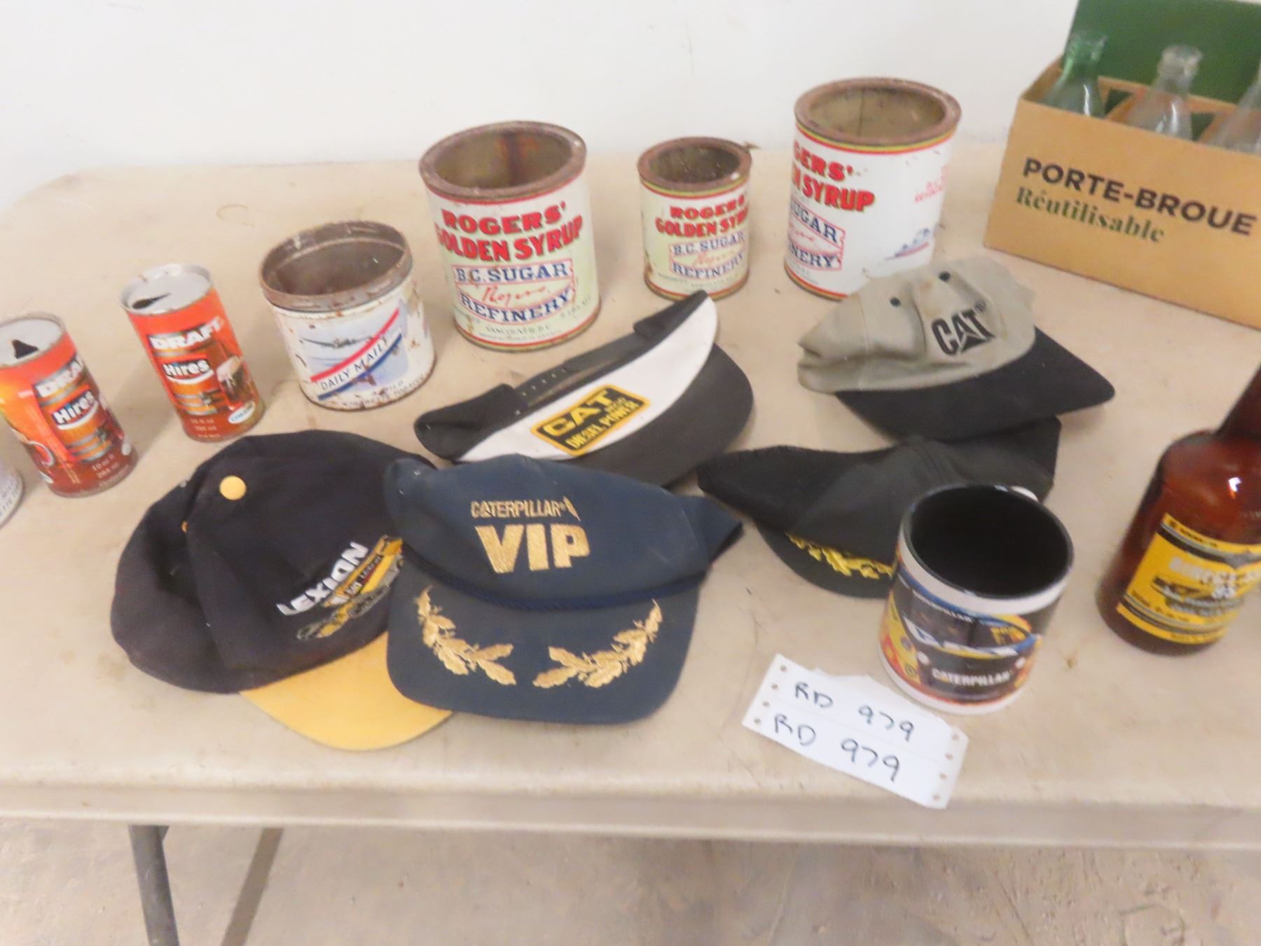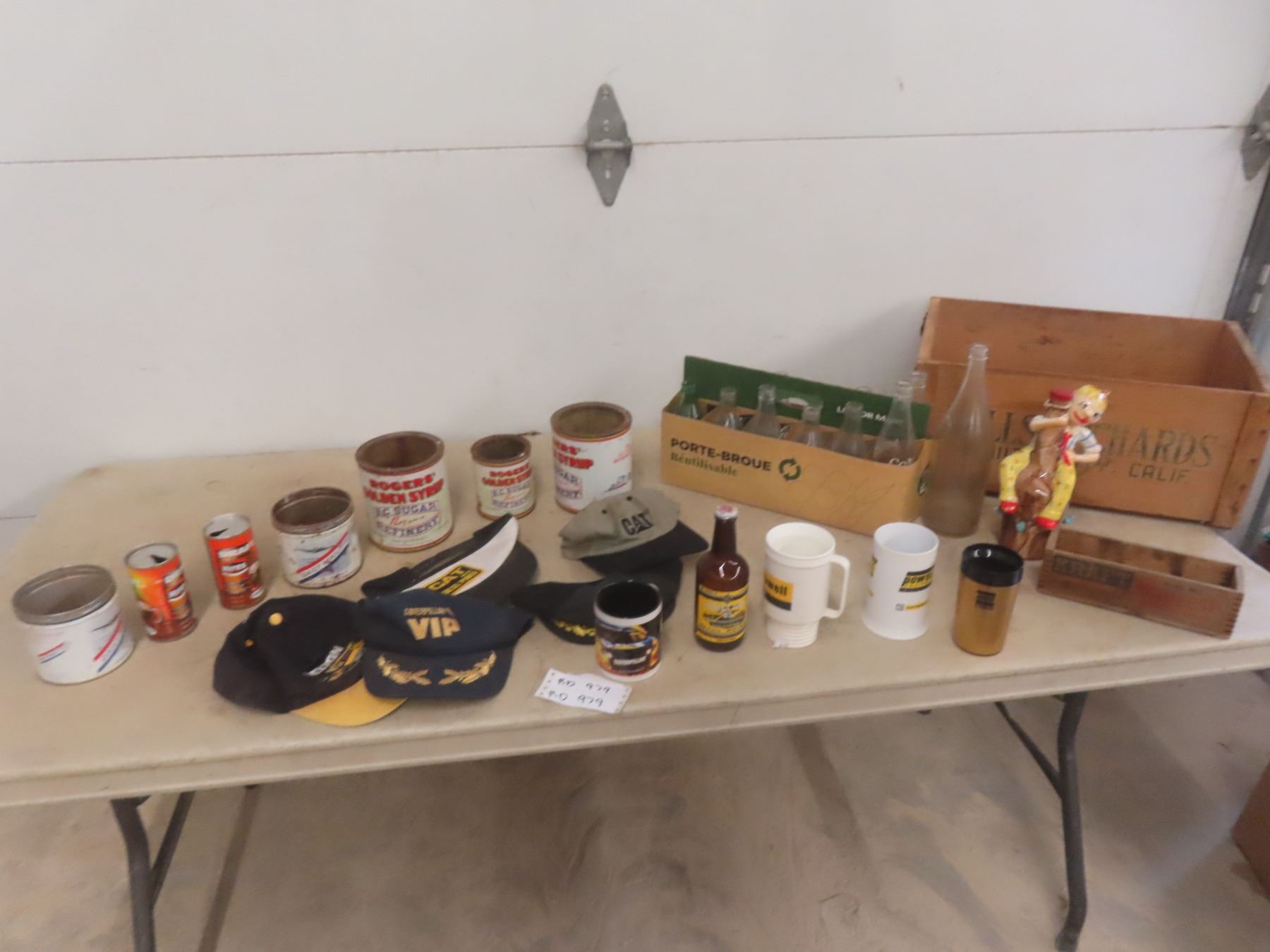 Fruit Crate , Honey Jars, Pop Bottles, + Cans , Cat Advertisement on Caps + Cups