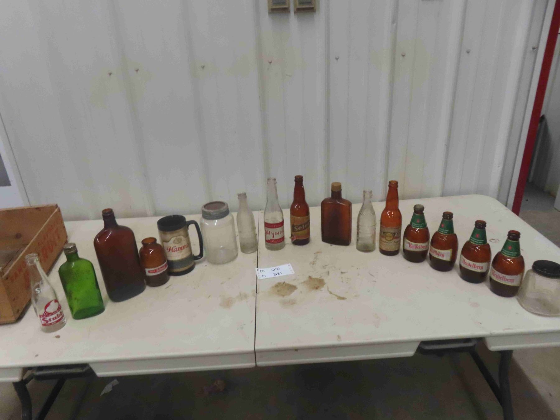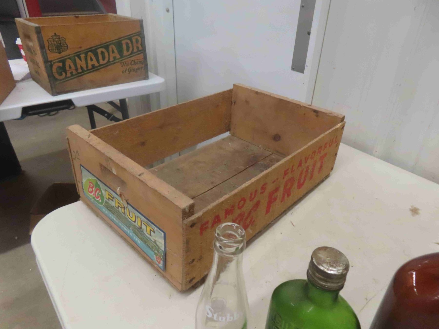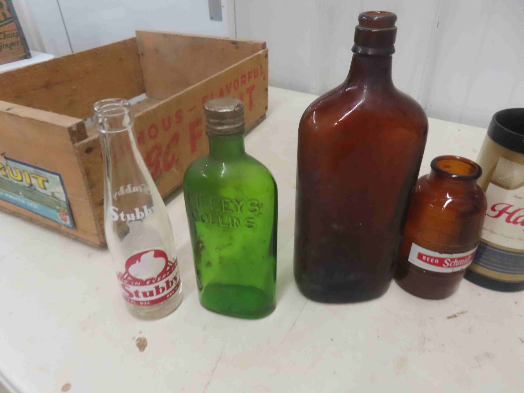 Fruit Wood Crate, Old Pop|Liquor|Beer Bottles, Nabob, Stubby & More