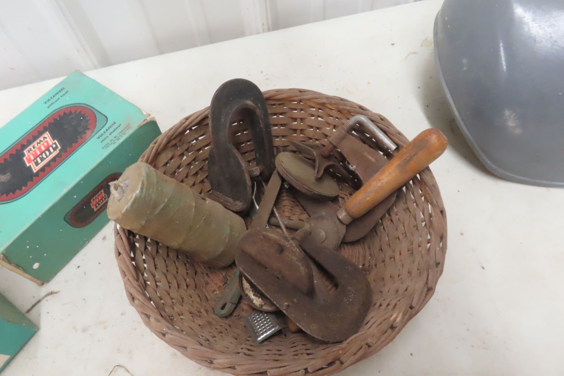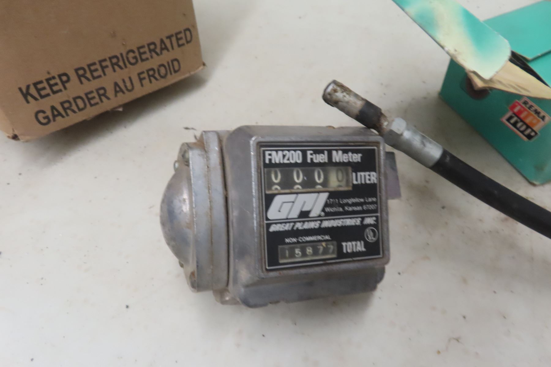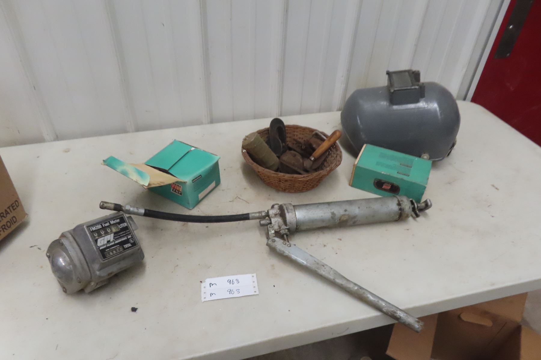 Fuel Meter, Tire Repair Tools and Tooling, Grease Gun, and Welding Helmet