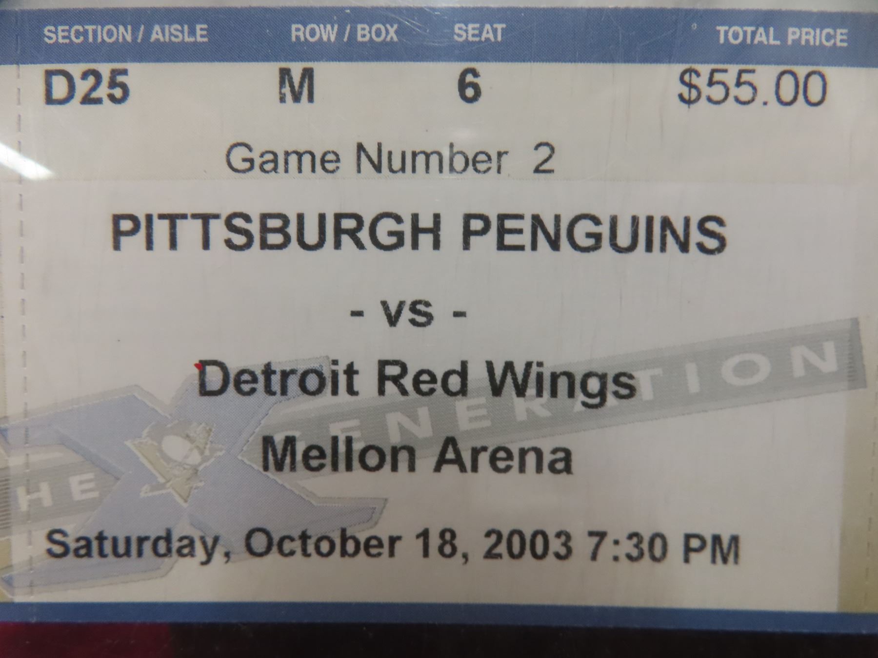 Full Unused NHL Pittsburgh Penguins 2003 Game Ticket