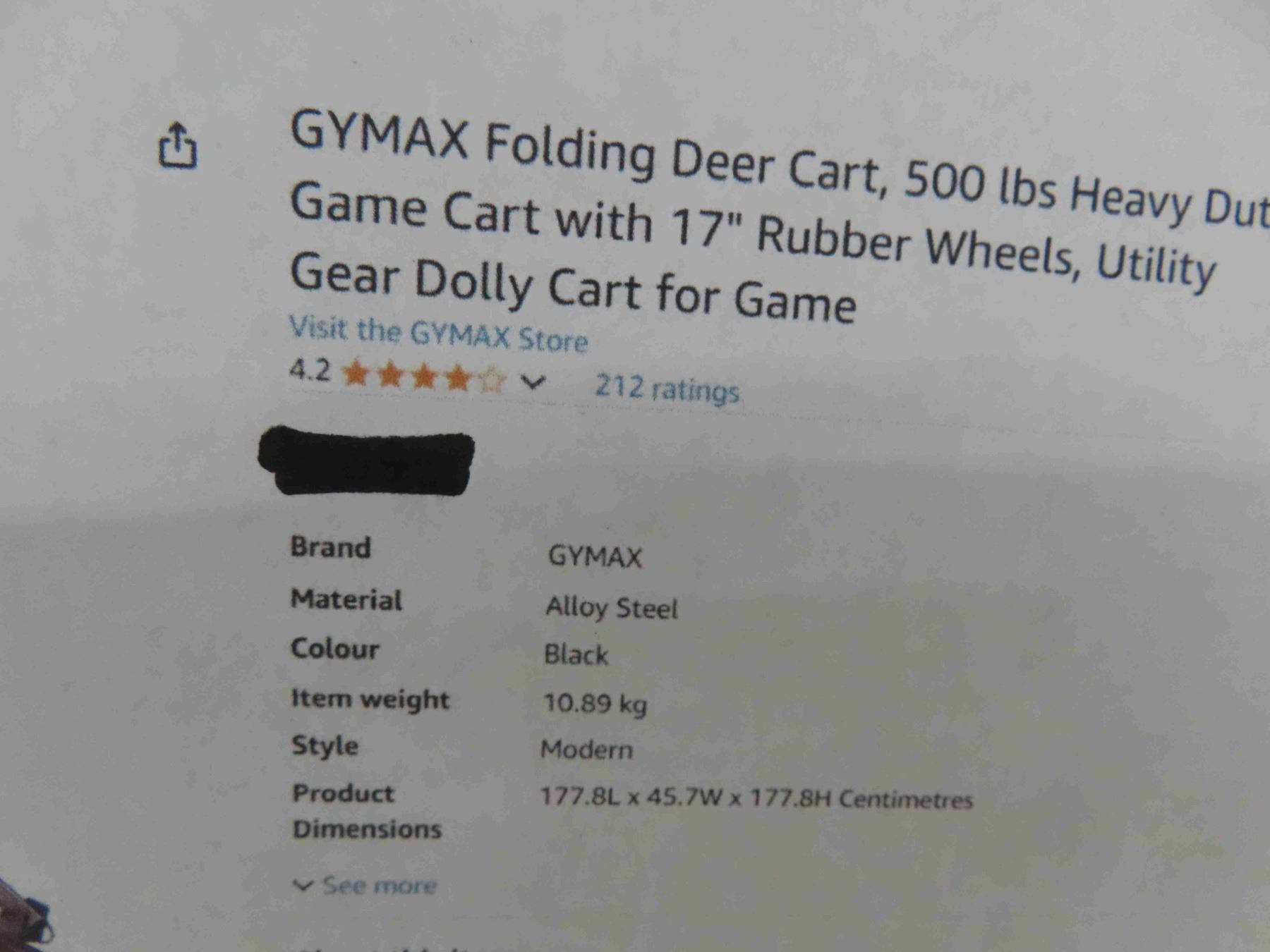GYMAX folding deer cart, 500 LBS heavy duty game cart with 17" rubber wheels, utility gear dolly cart fopr game New or Store Return