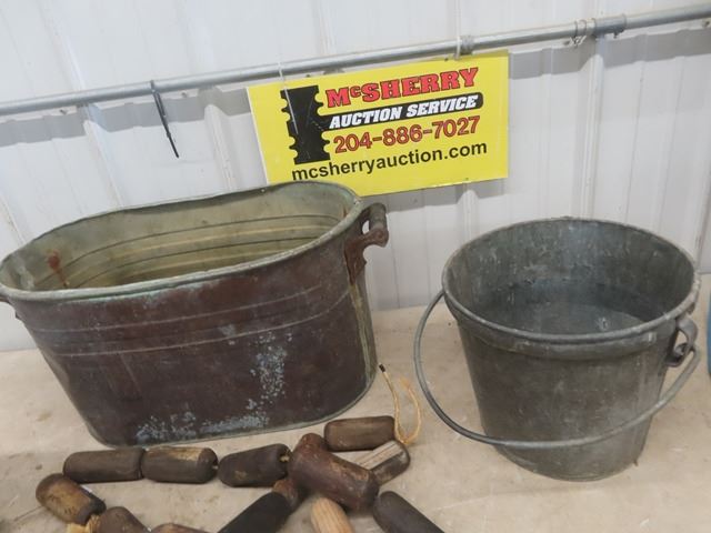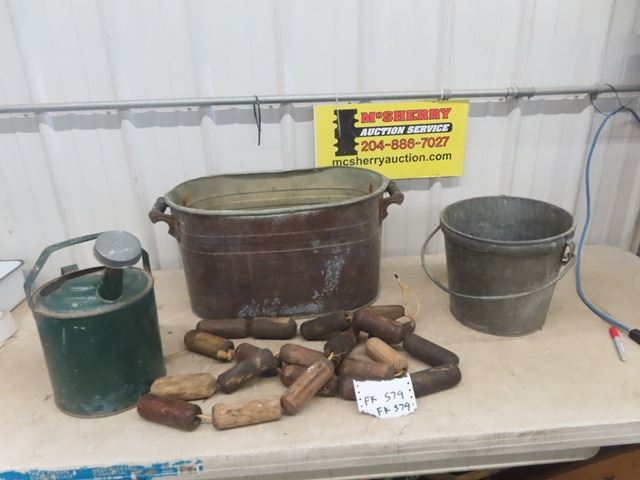 Galvanized Pail with Handle , Watering Can, Copper Boiler, Wooden Fishing Net Floats