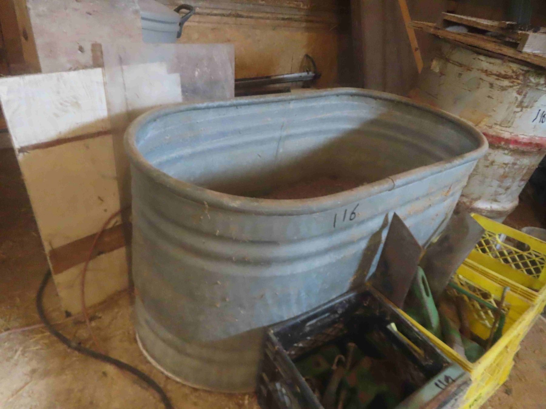 Galvonized Water Trough, 45 Gallon Drum, Rubbermaid Garbage Cans