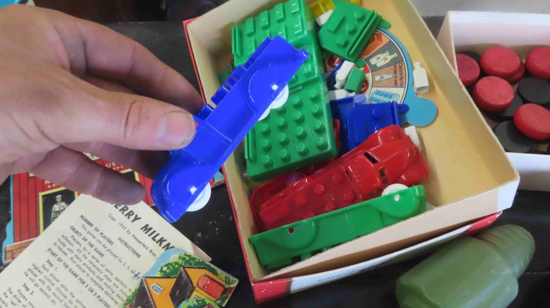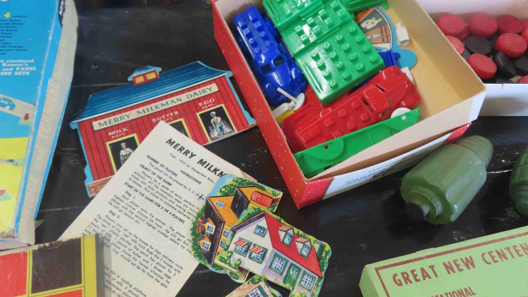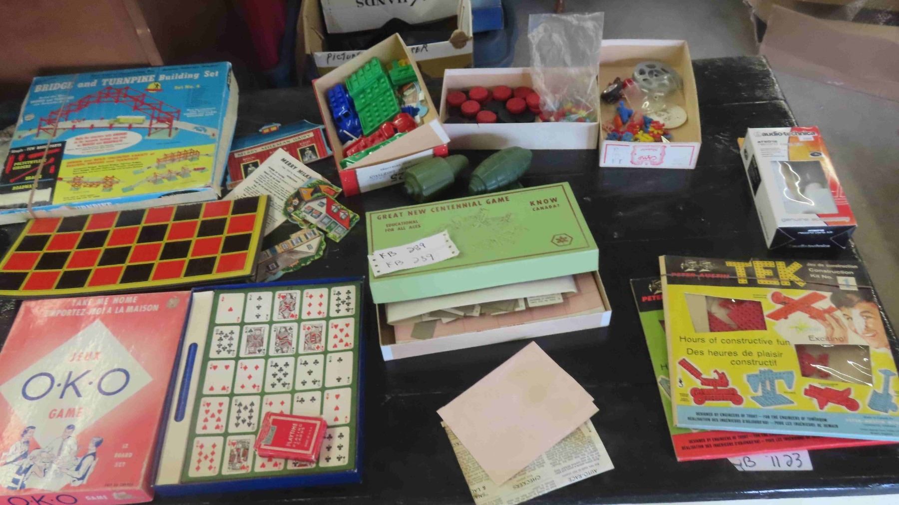 Games and Toys: Tek, OKO, Checkers, Bridge and Turnpike Building Set, Plus