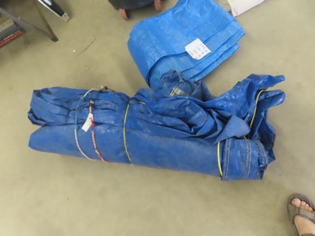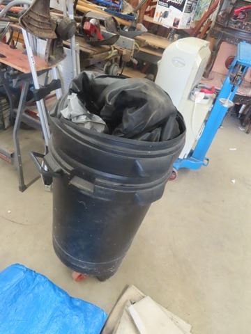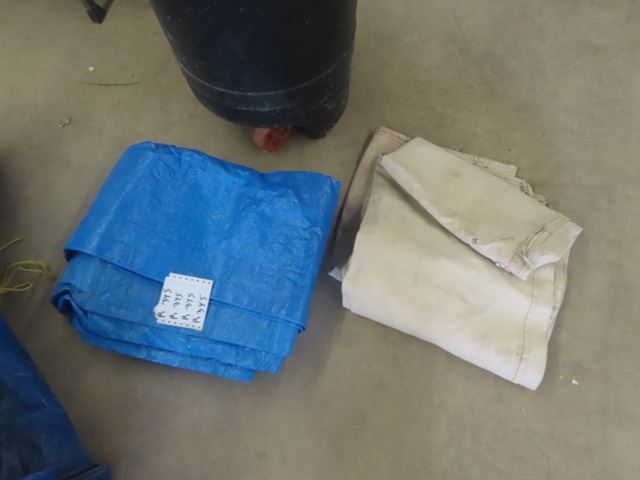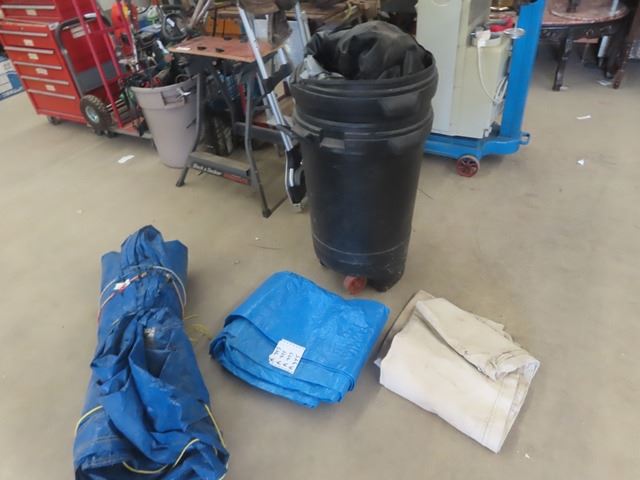 Garbage Can Full of Tarps/ Covers & 3 Outdoor Garbage Cans