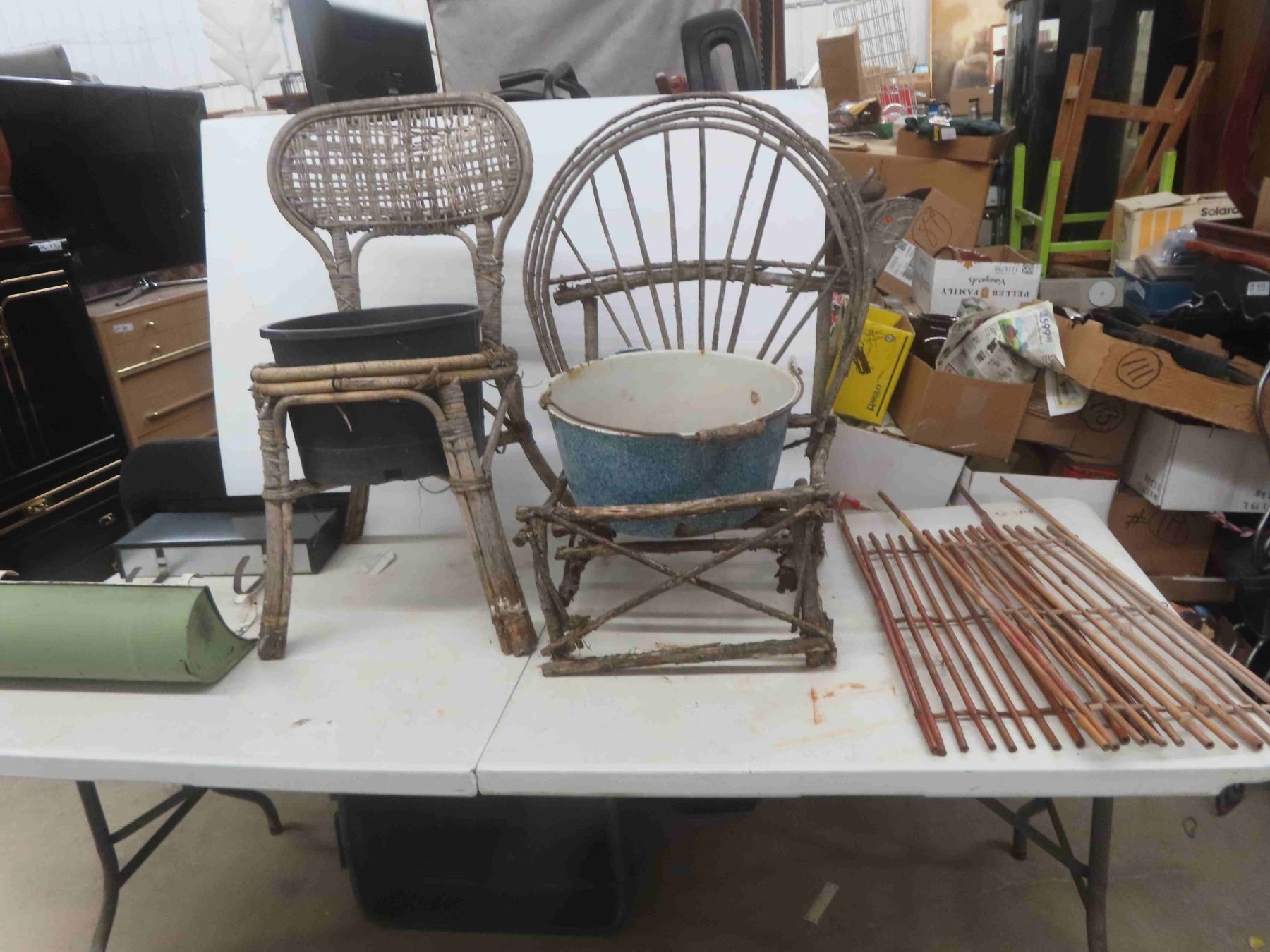 Garden Décor: Chairs with Planting Flower Pots, 2 Metal Mail Boxes