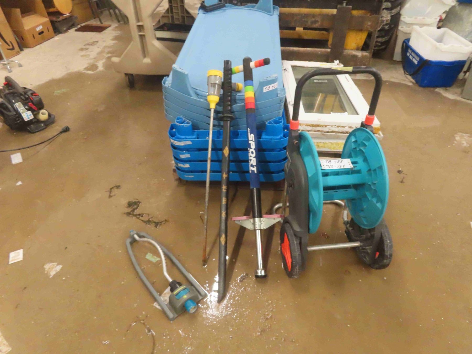 Gardenia Hose Mobile, Sprinkler Head, Wooden Sword, Pogo Stick