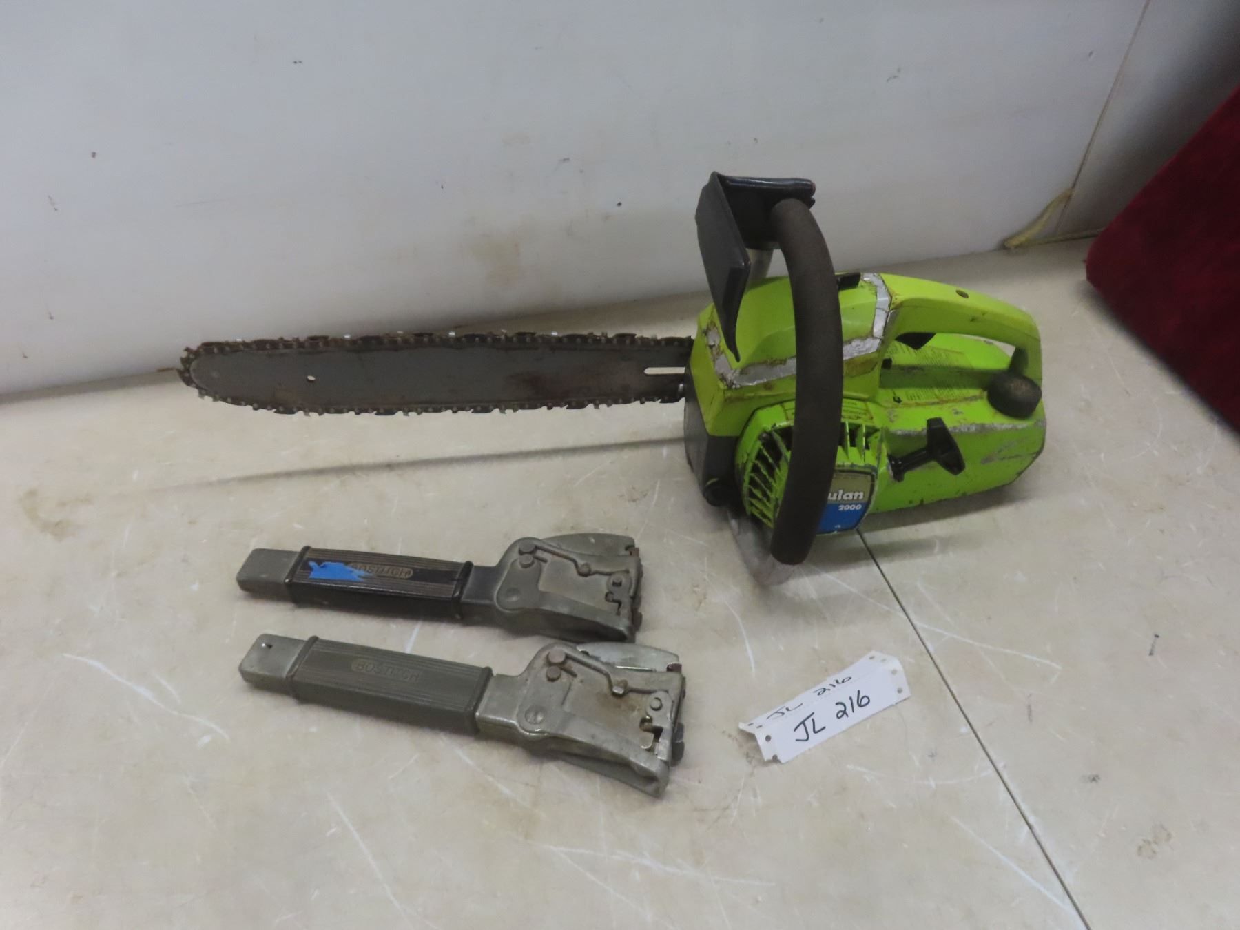 Gas Poulan 2000 Chainsaw (Needs Tune-Up) and Two Antique Bostitch Staplers