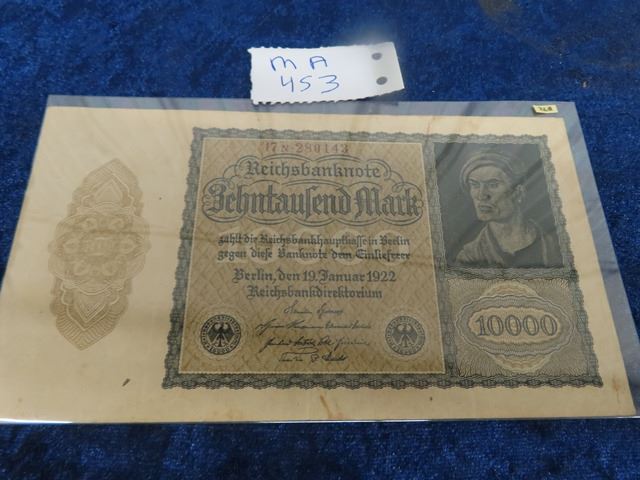 Germany 1922 Sailor 10,000 Reichs Bank Note Mint Cond