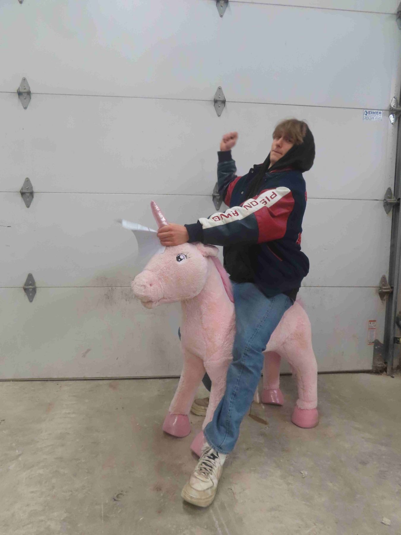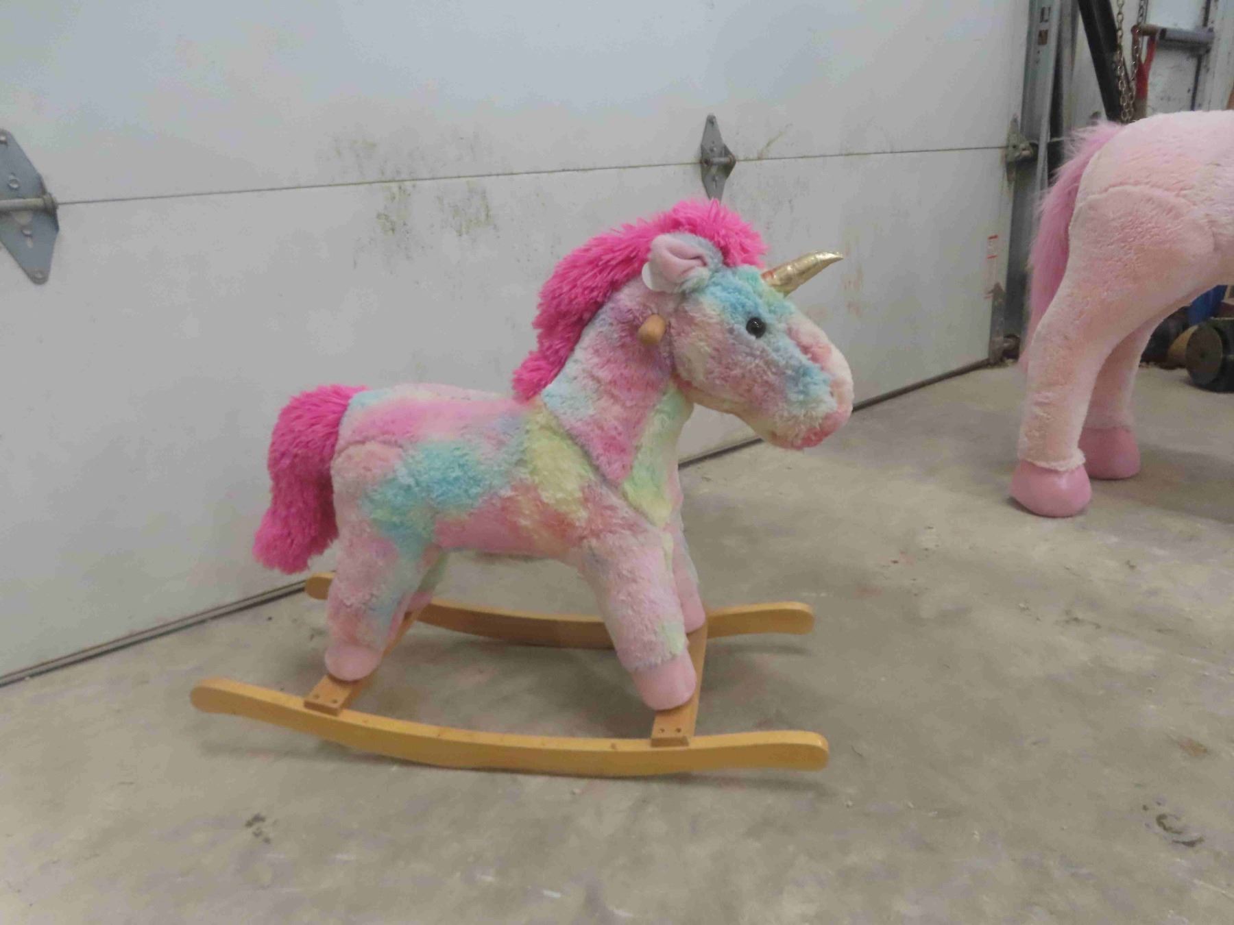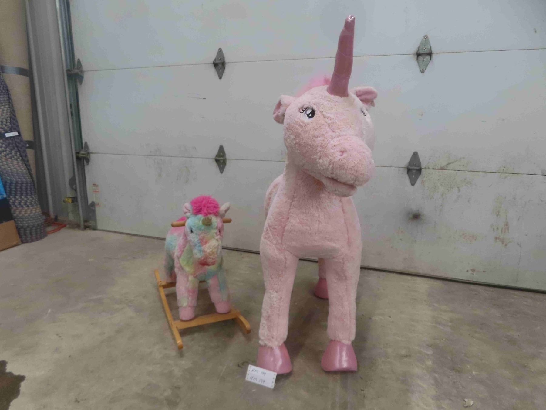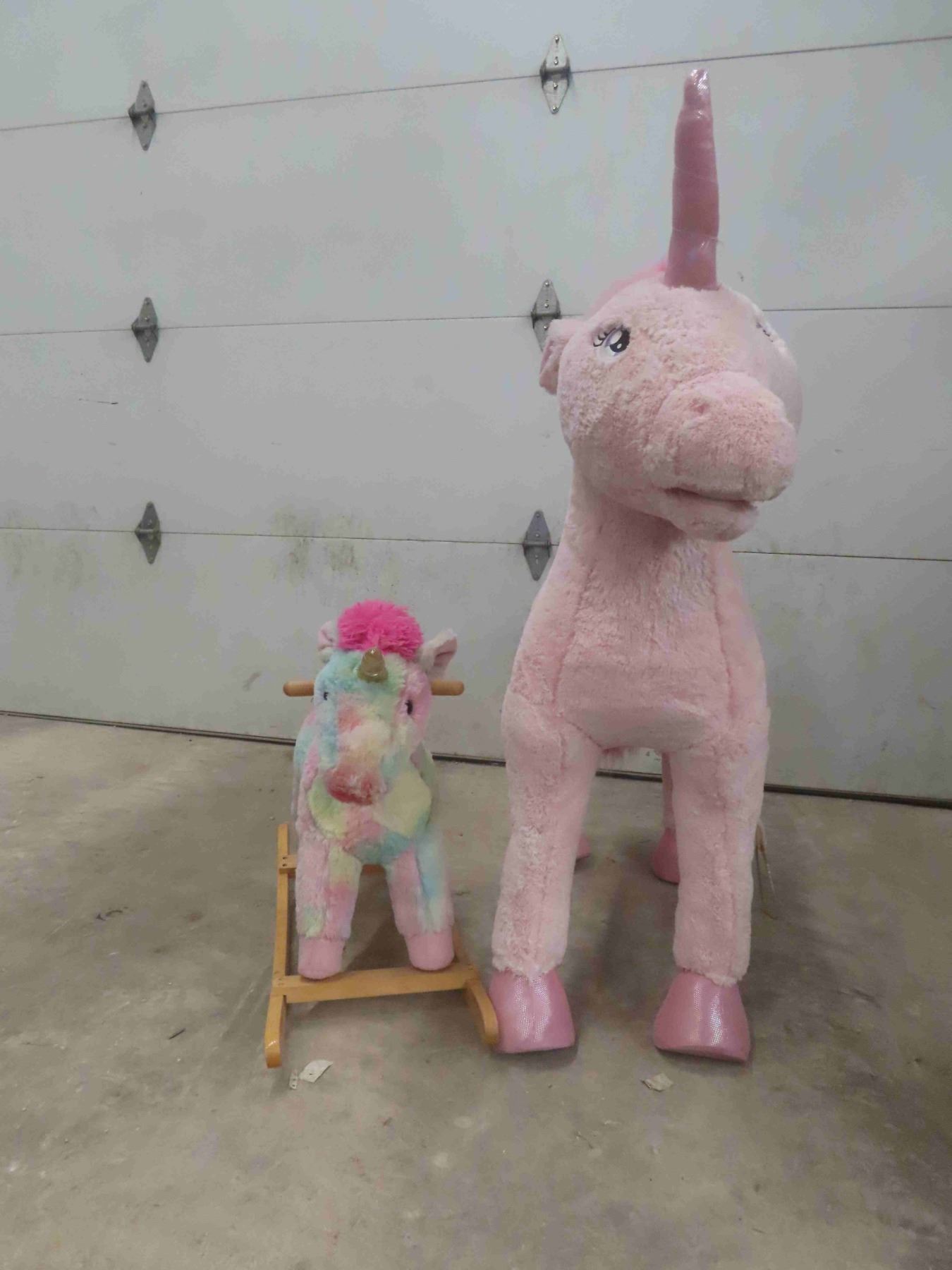 Giant Pink Unicorn 39" x 46" & 1 Rocking Unicorn 12" x 24" x 28"