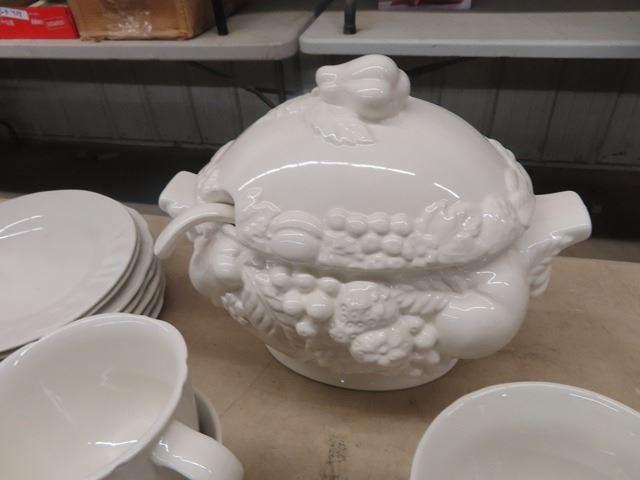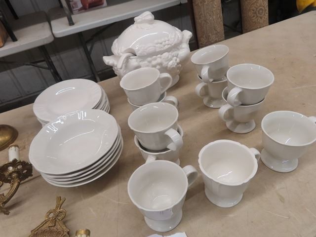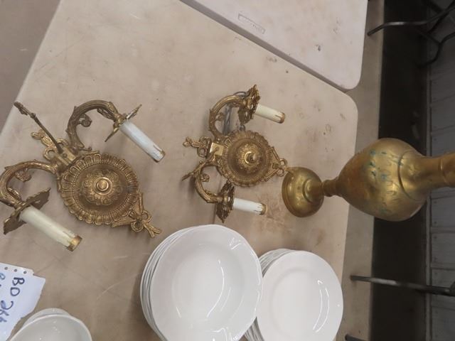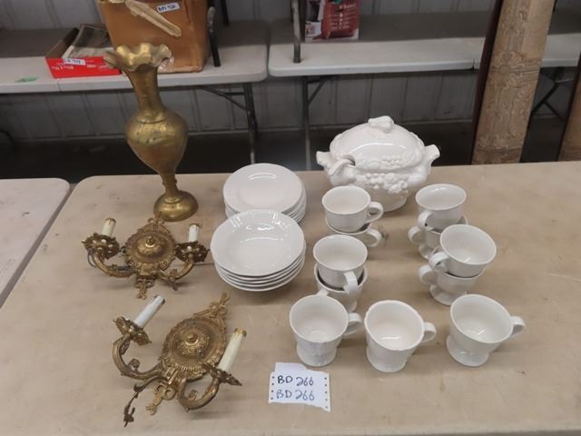 Gibson Dishes, Soup Tourenne, Brass Vase Brass Wall Mount Light Fixture