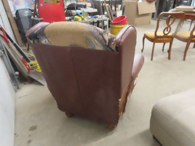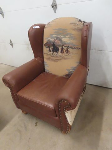 Giddy Up Cowpokes ! Leather Sitting Chair with Horse Pattern on Back + Cowhide on Sides