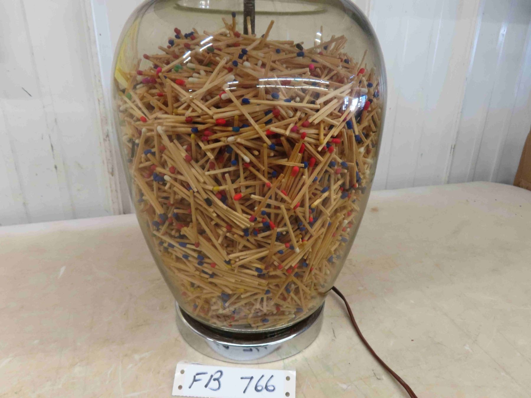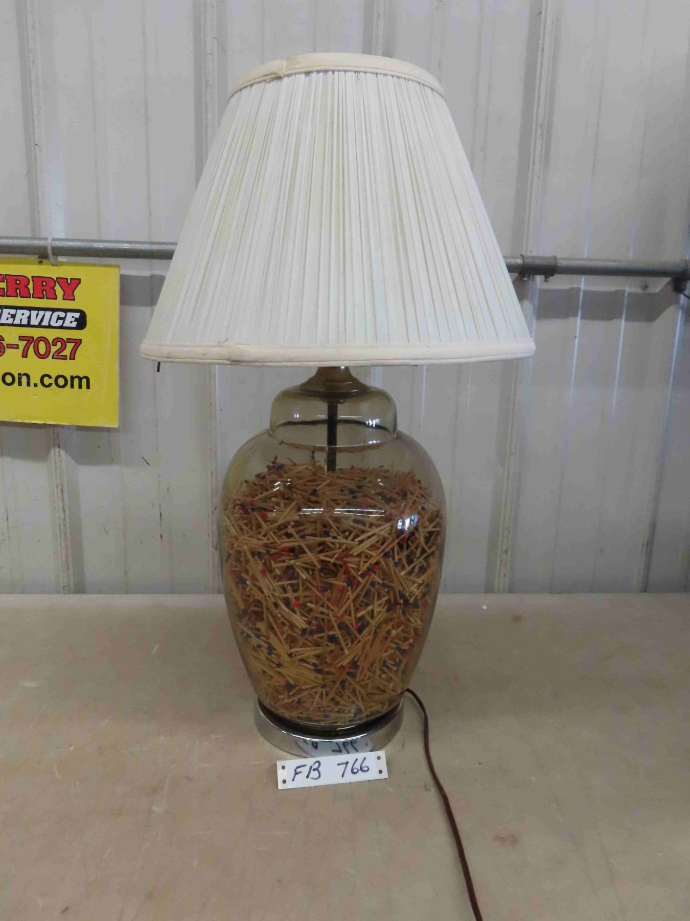 Glass Base Table Lamp Full of Match Sticks - works 25" Tall