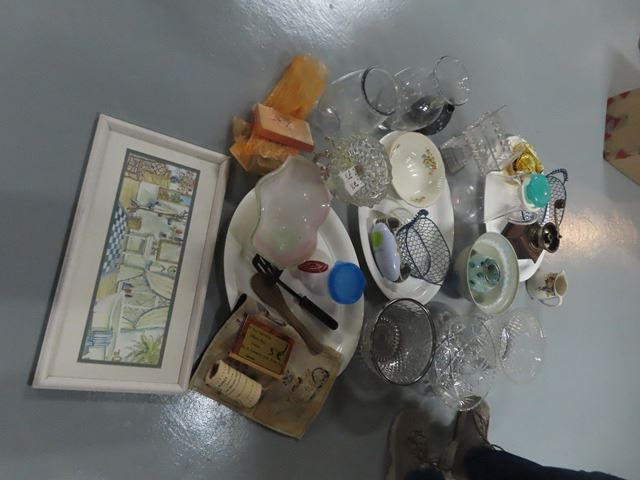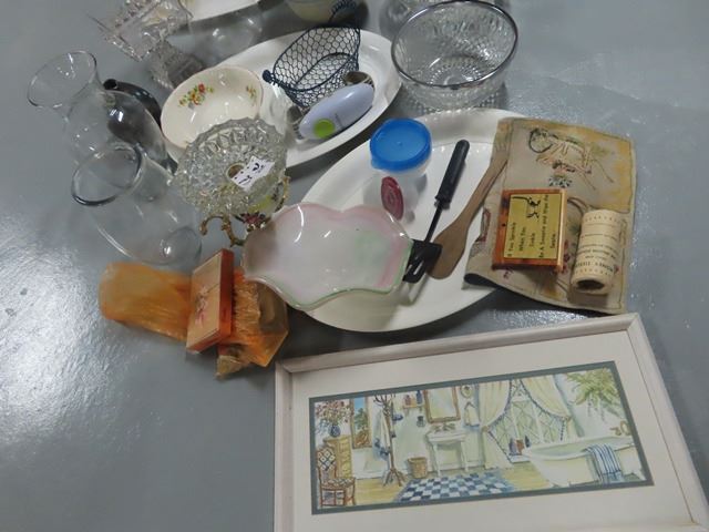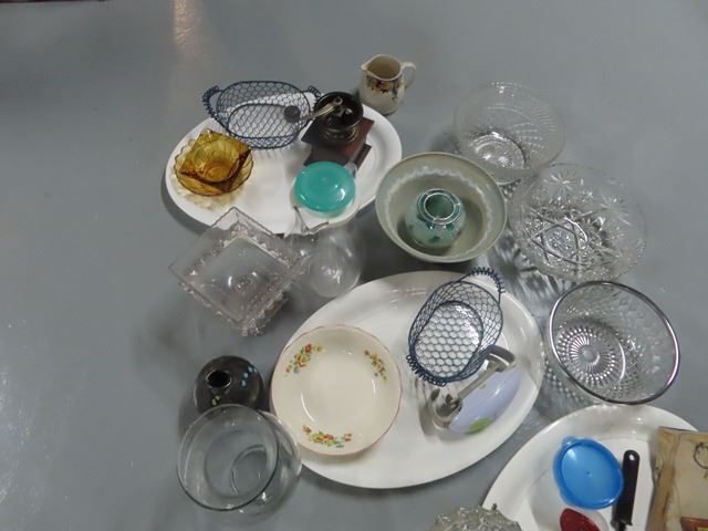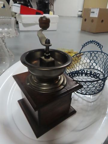 Glass Bowls, Misc Trays, Jugs, Wooden Coffee Grinder