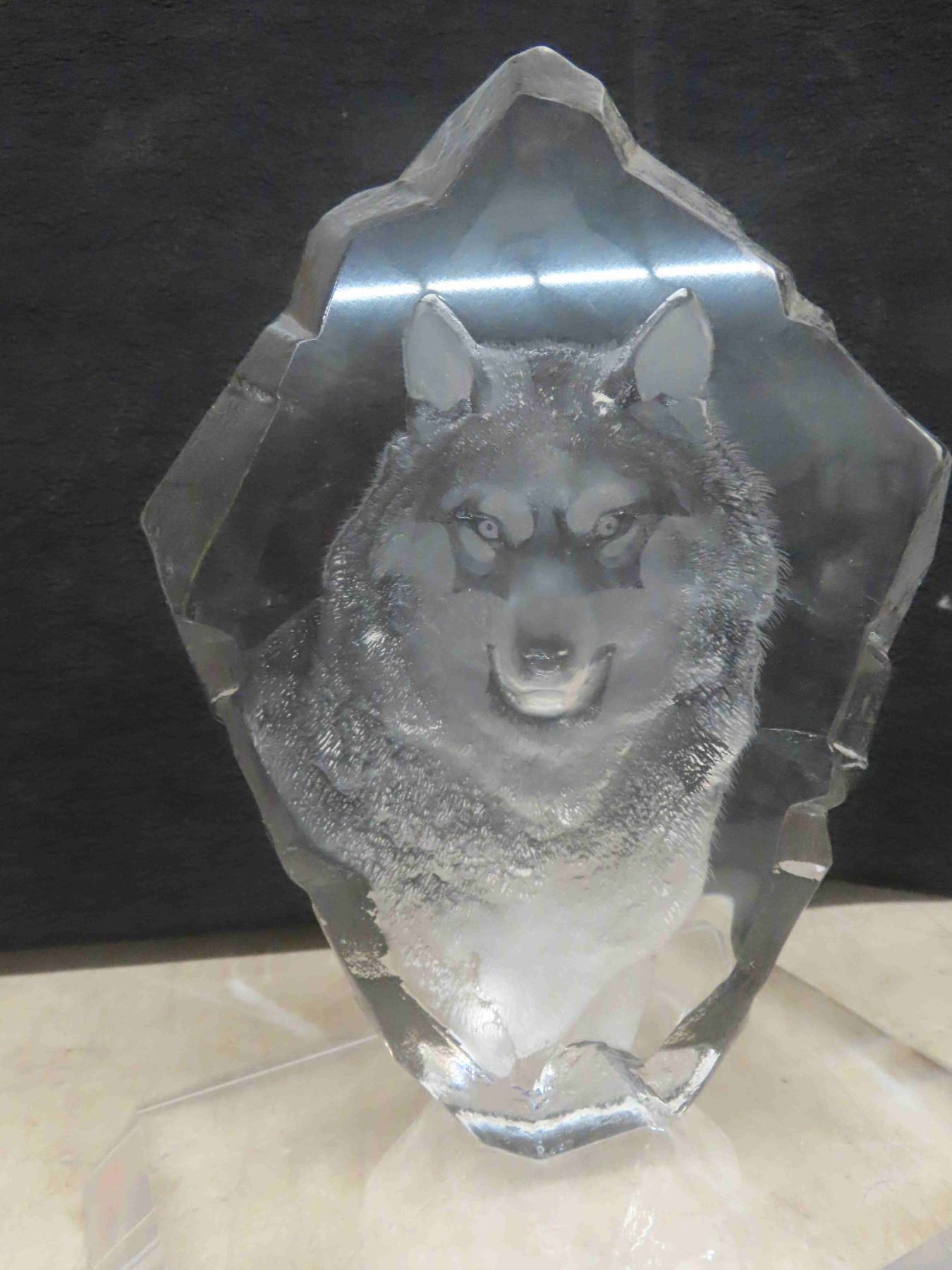 Glass Cut Plaque of Wolf - 2pcs, Base 5" x 7.5" x 10"
