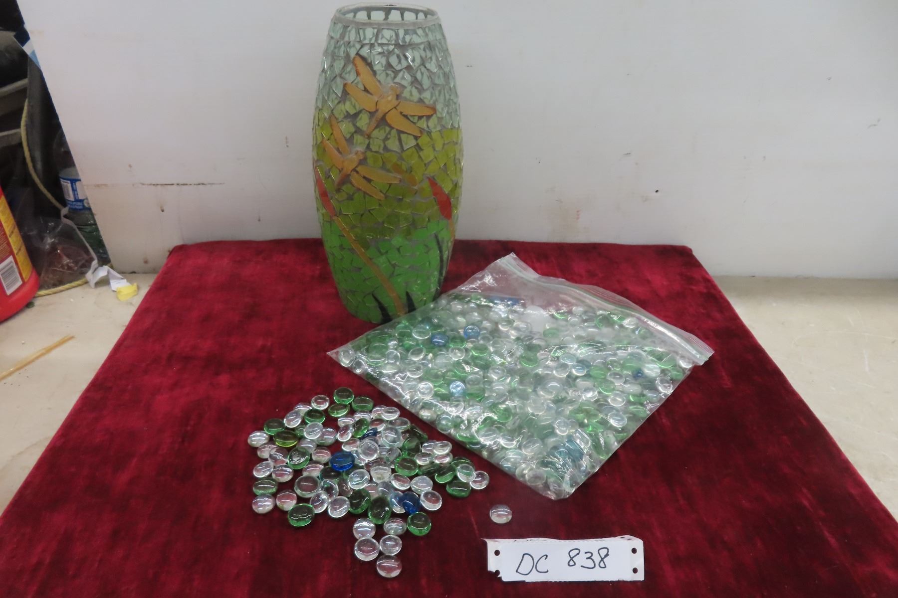 Glass Decorating Marbles and Dragonfly Vase 12 1/2'' H