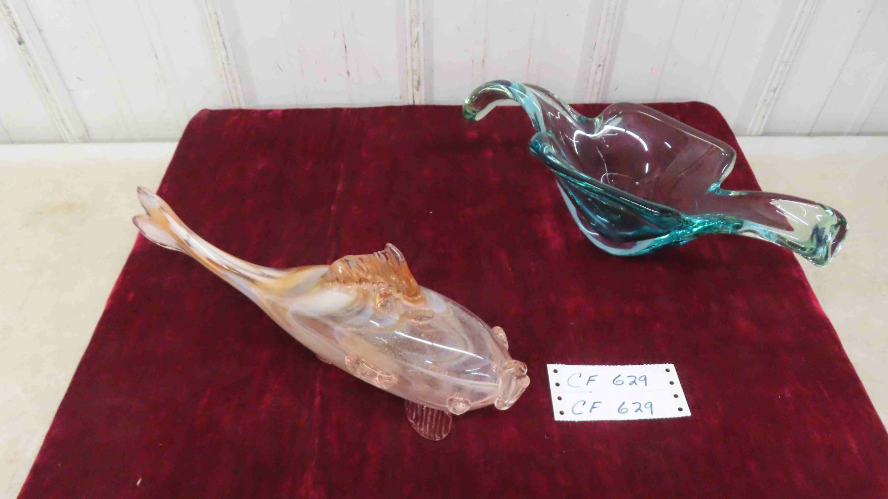 Glass Ornaments Multi Color Fish 3" x 7" x 15.5" + Aqua Fancy Dish 14" L