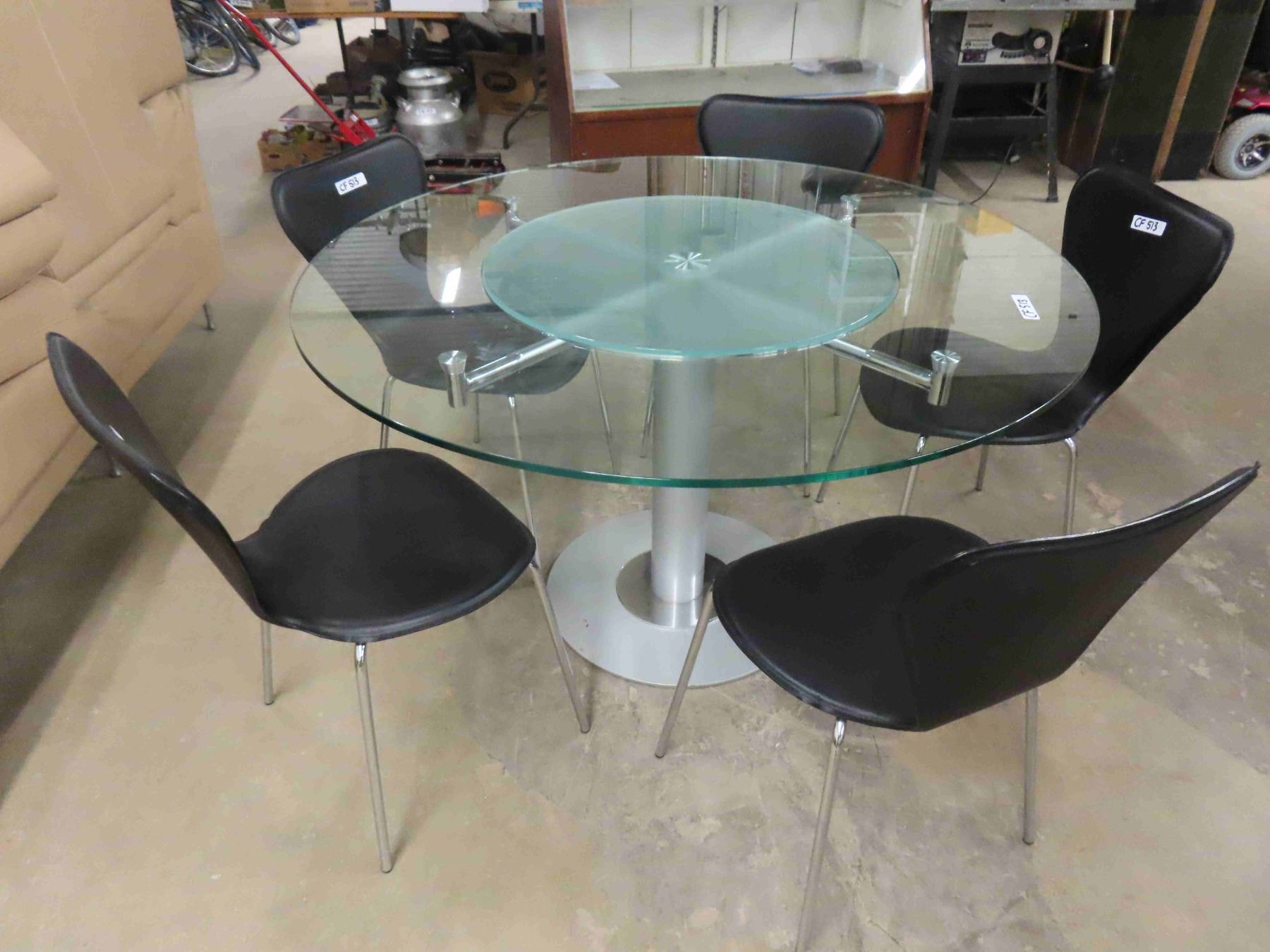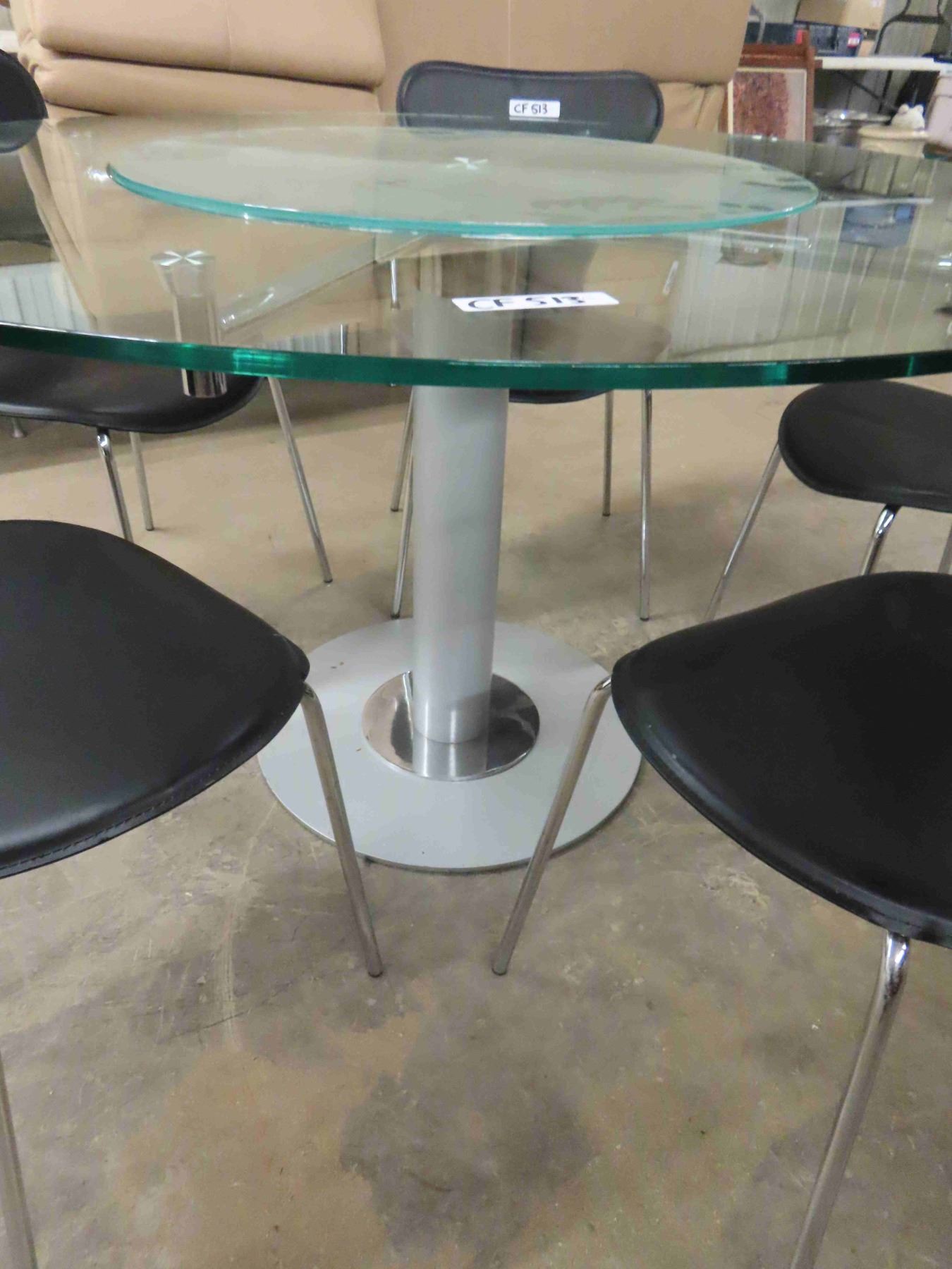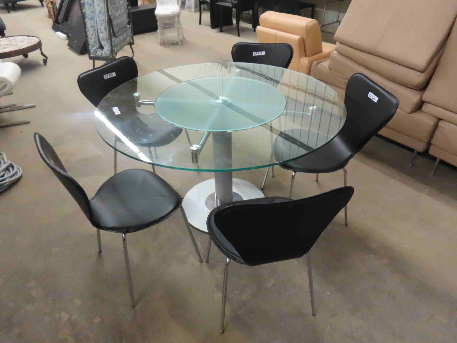Glass Top Table with Inner Spinning Section + Pedestal Base 29.5" x 51" - Includes 5 Vinyl Covered Chairs