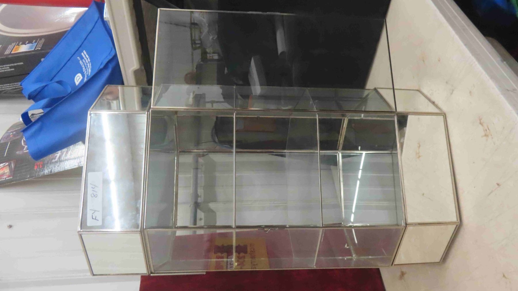 Glass and Mirror Showcase with 3 Shelves 14'' x 14'' x 26'' (Some Panels Have Cracks, See Photos)