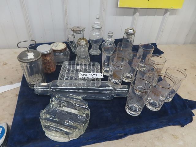 Glasswares; 10 Centennial Glasses, Mixers, Shakers Rolling PIn plus more