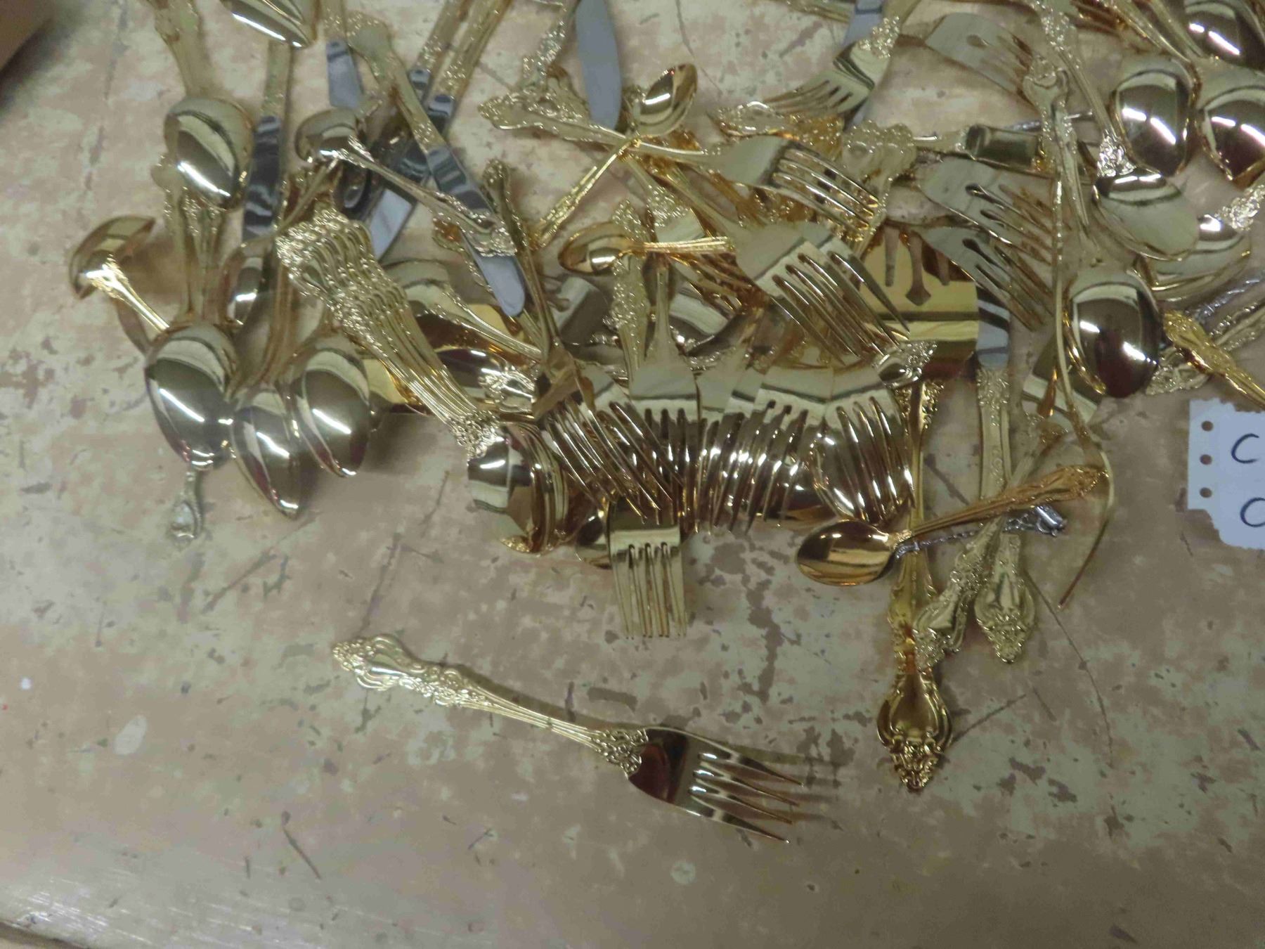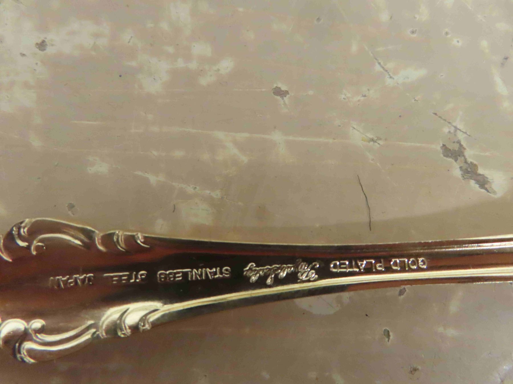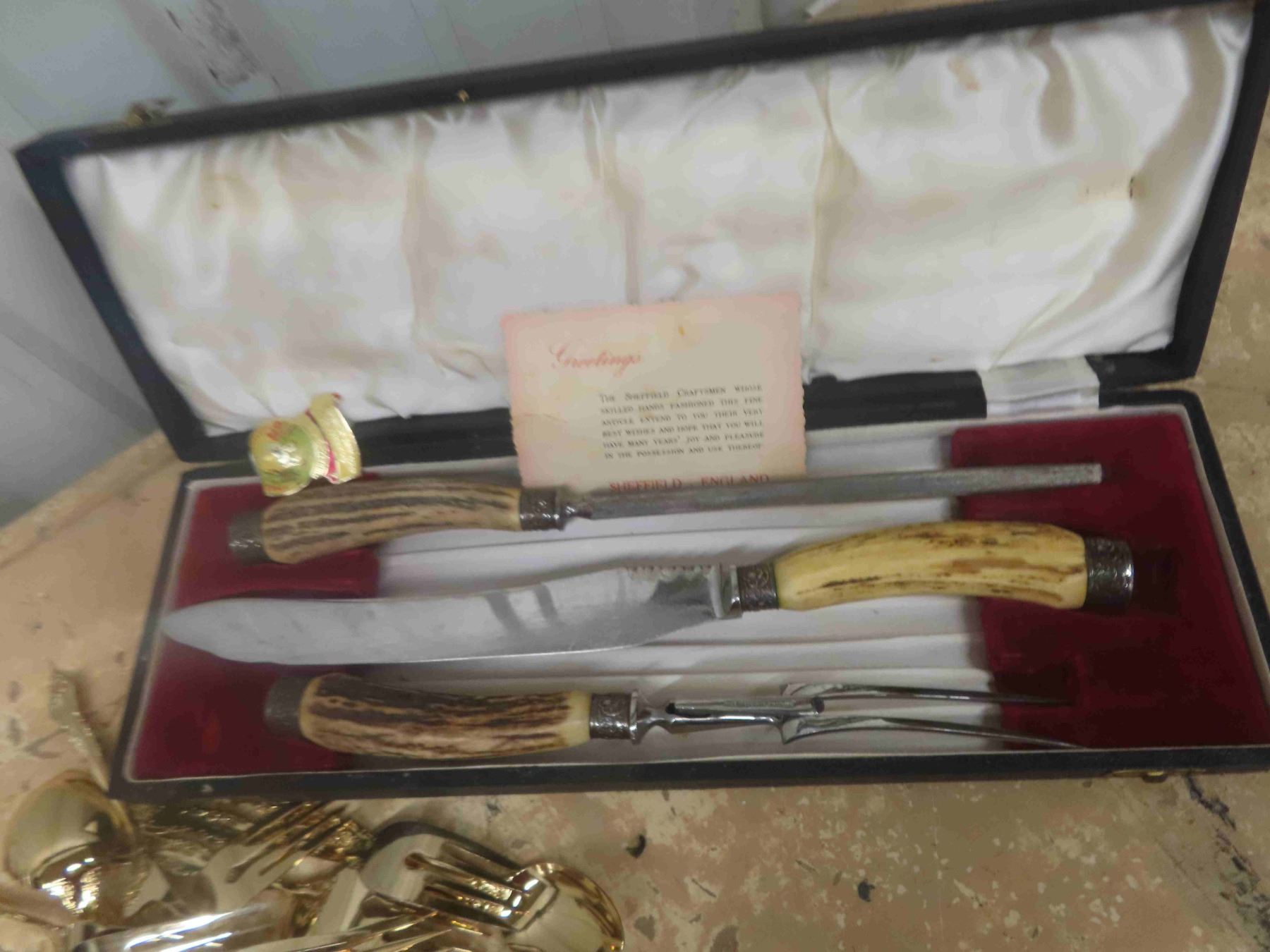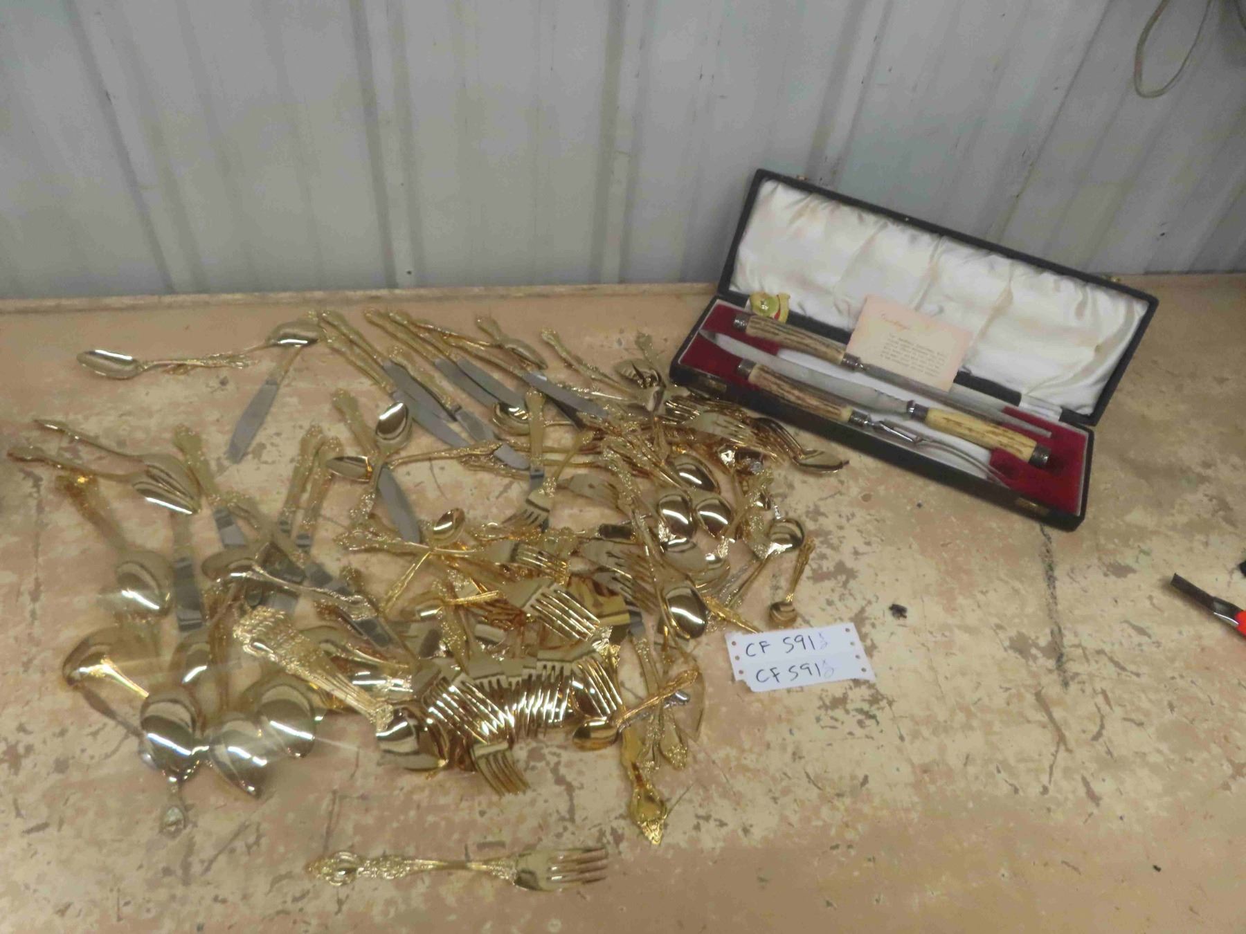 Gold Plated Flatware Set + Sheffield Bone Handled Carving Set