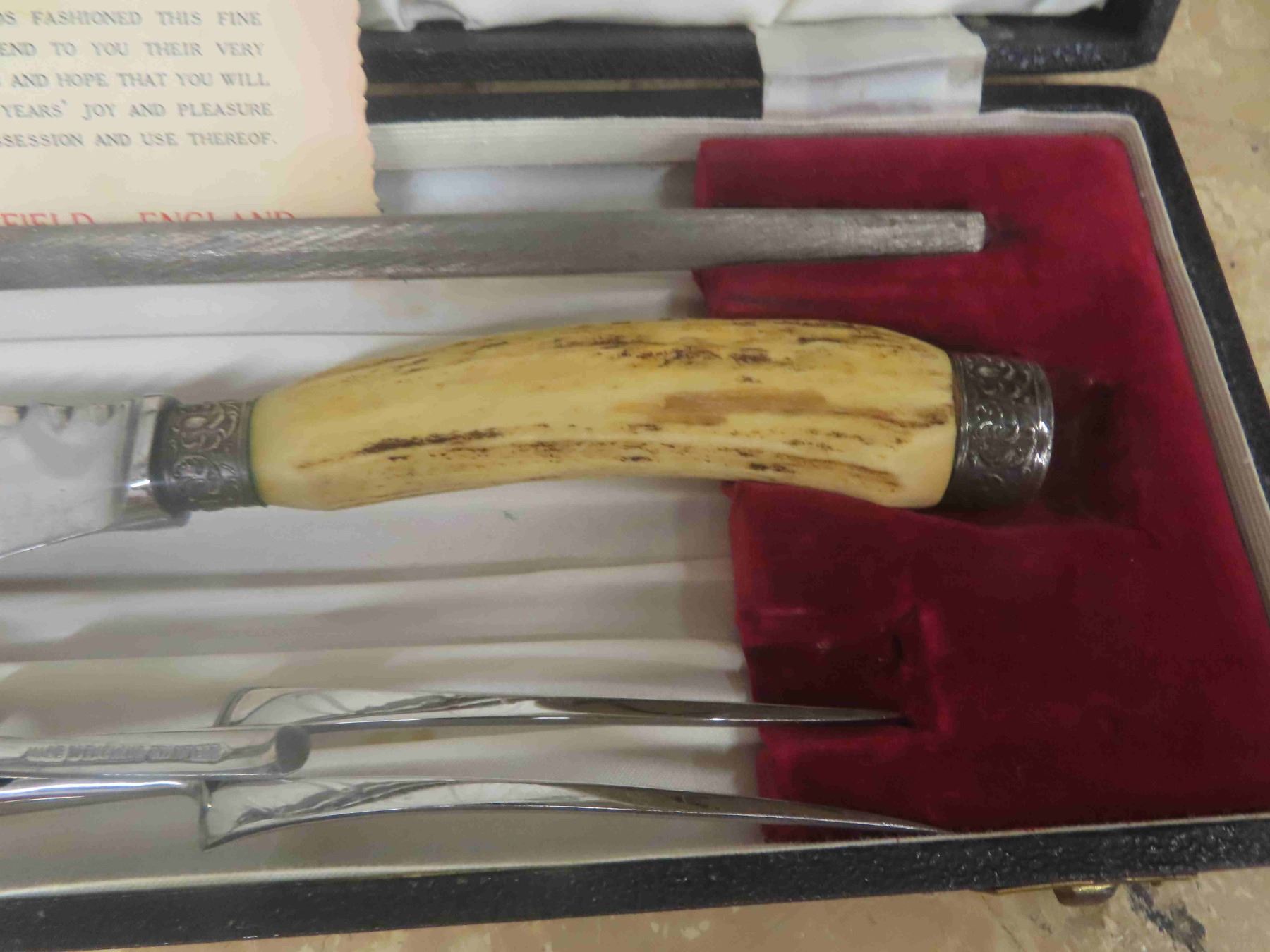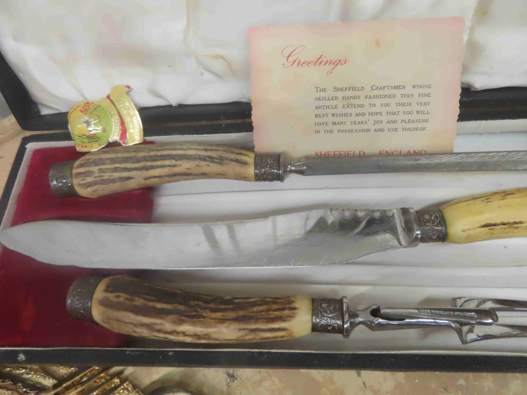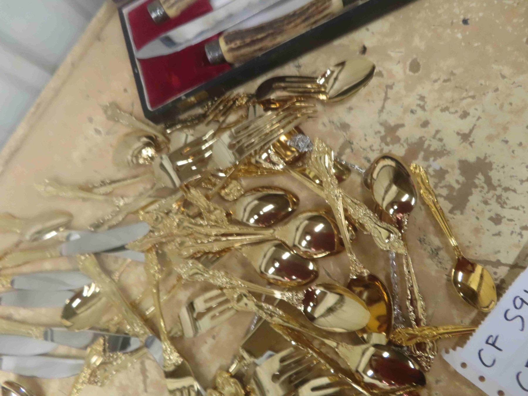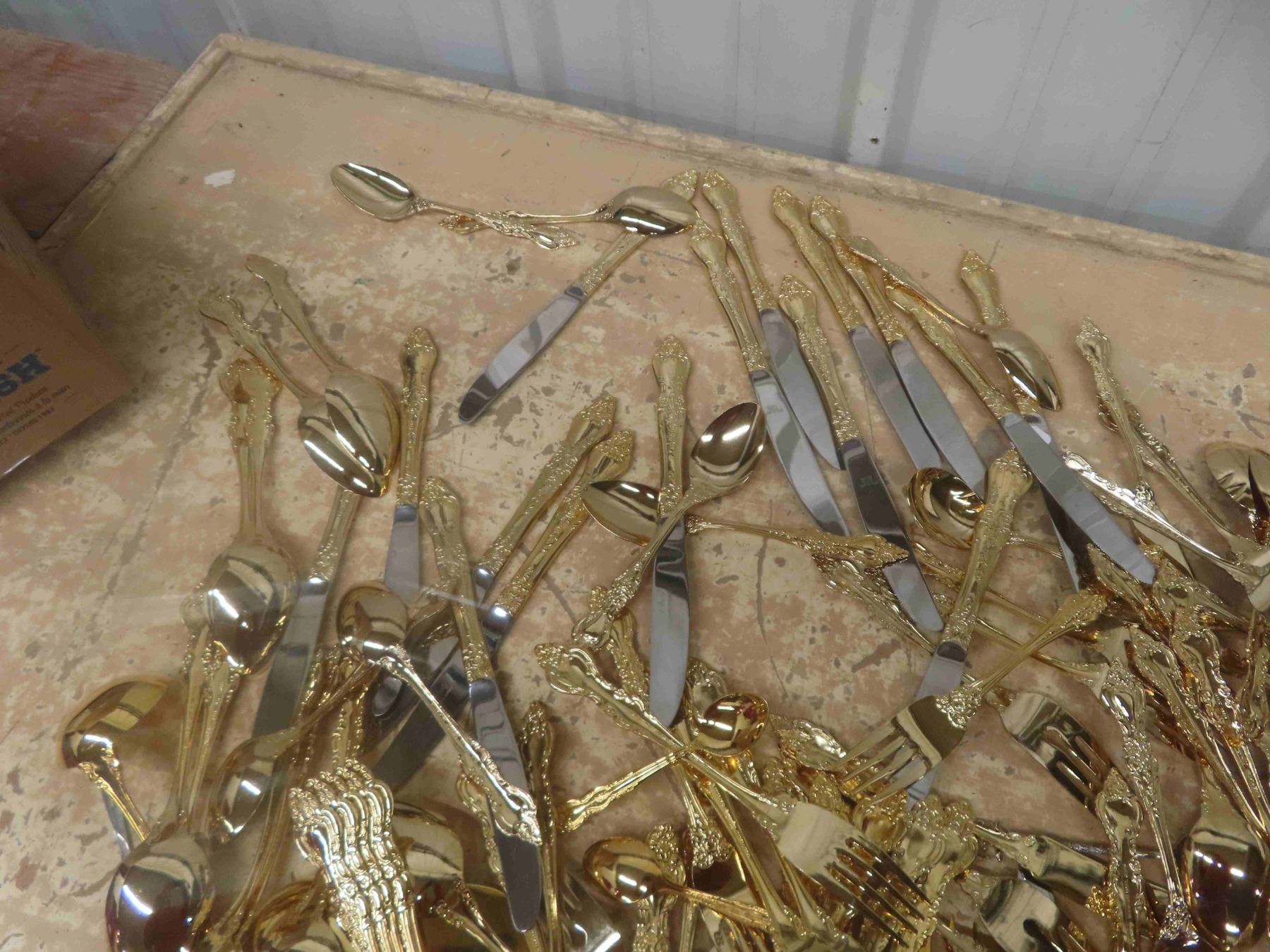 Gold Plated Flatware Set + Sheffield Bone Handled Carving Set