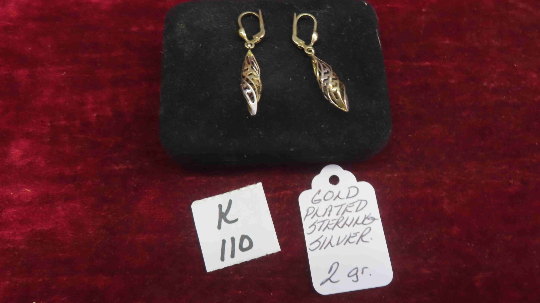 Gold Plated Sterling Silver Earrings Total Weight 2 Grams