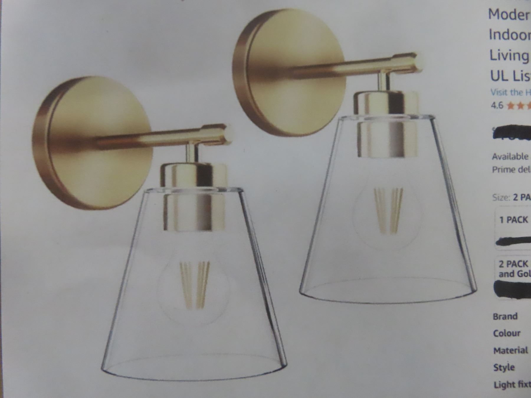 Gold Wall Sconces Set of 2, Bathroom Light Fixture - New or Store Return
