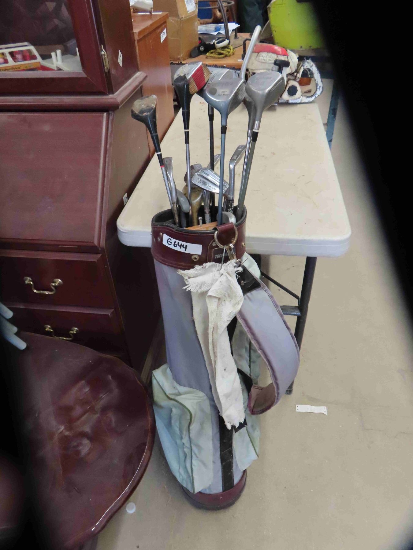 Golf Bag with 14 Assorted Clubs - Metal + Wood Drivers , Irons Putter