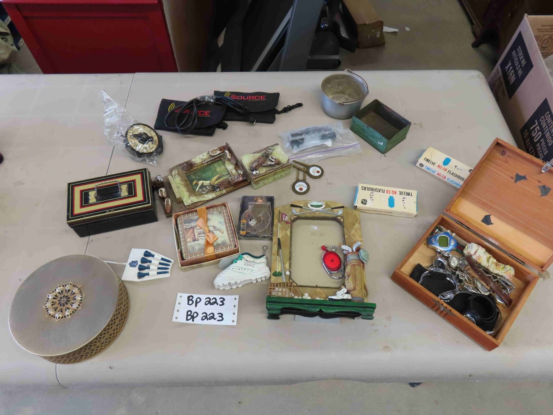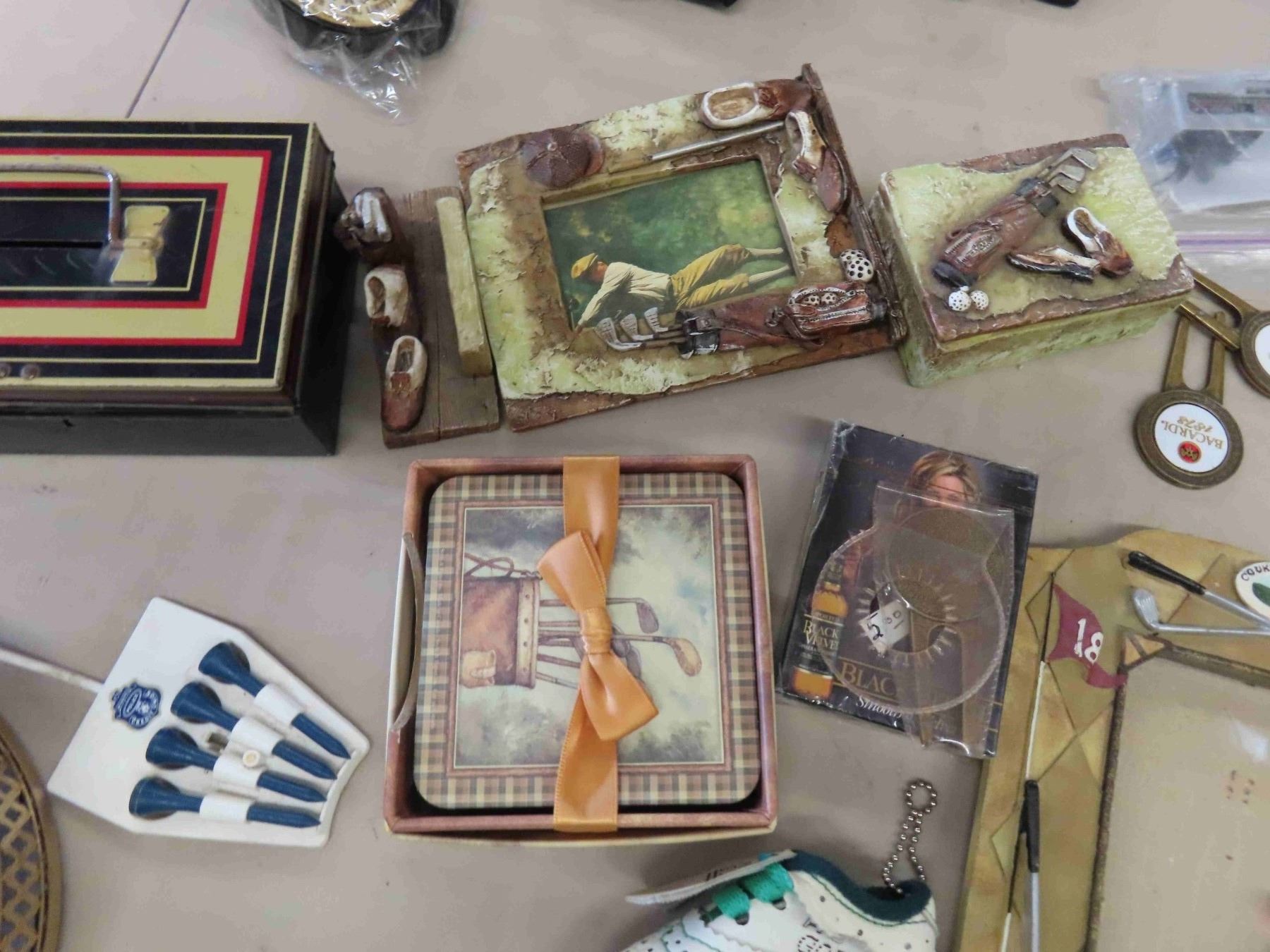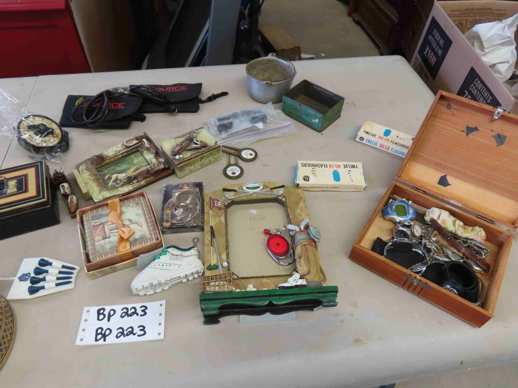 Golf Themed Picture Frames, Teletrol Timer, Tin Cash Box, Wooden Box with Watches, plus more