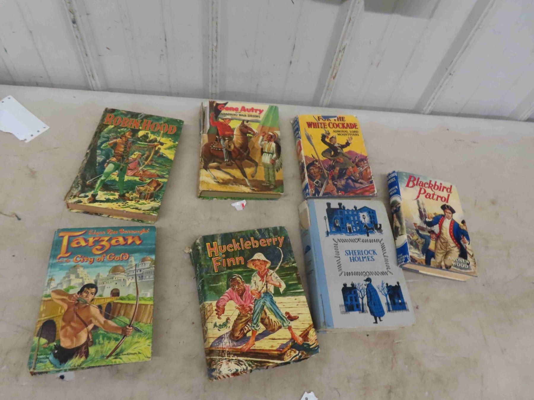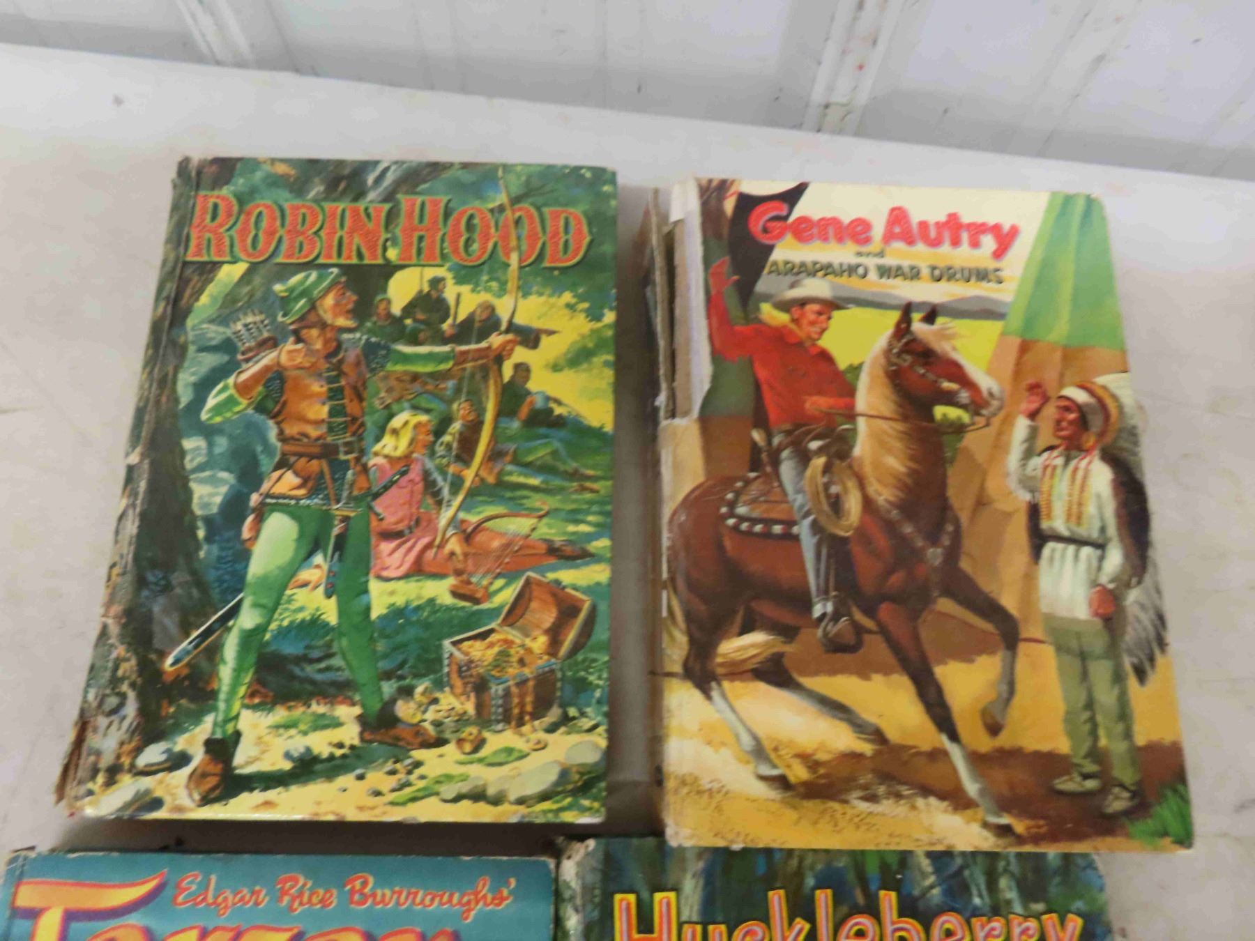 Good Old Hard Cover Story Books ; Huckleberry Finn, Gene Autry, Robin Hood, plus others